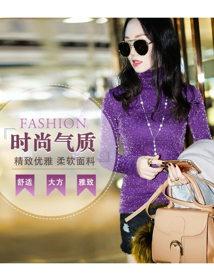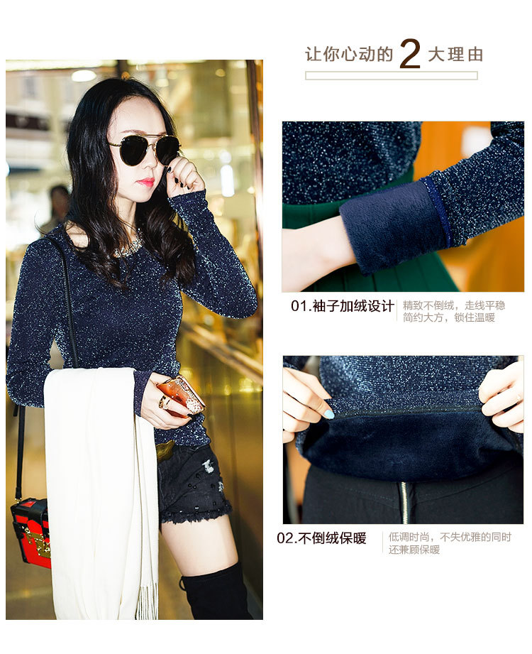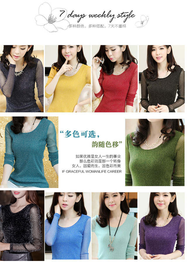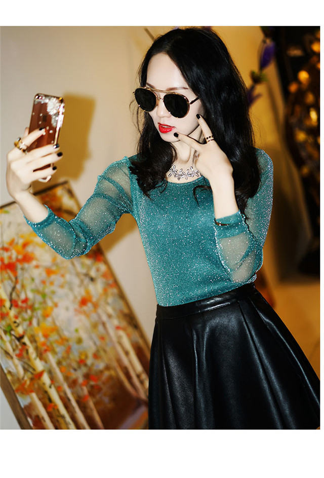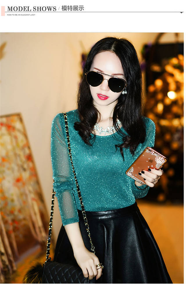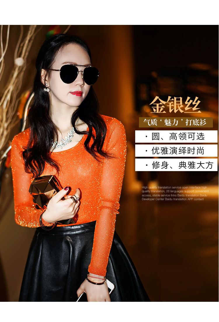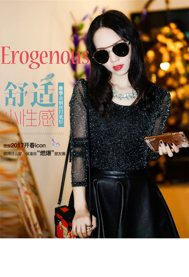 【双十一预热抢先购】SMFZ122新款潮流时尚气质修身长袖金银丝网纱加绒打底衫