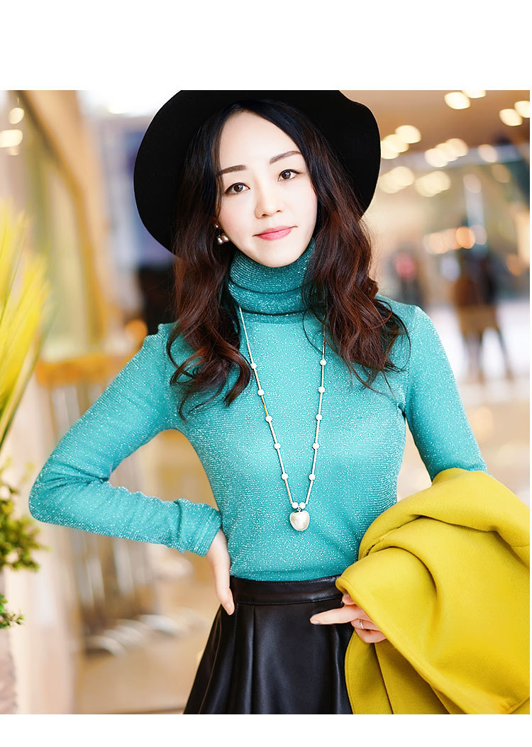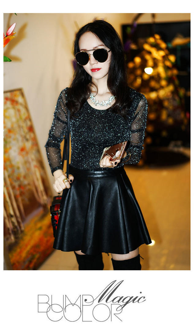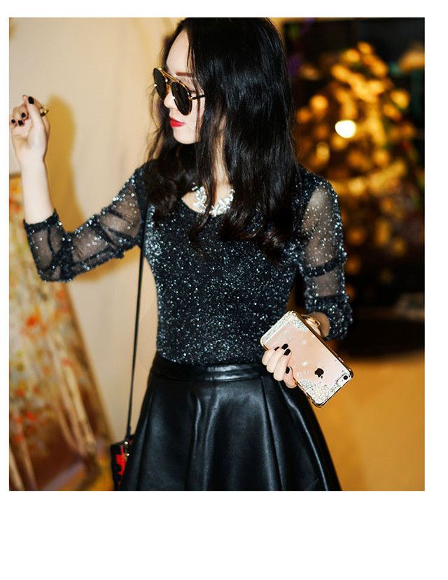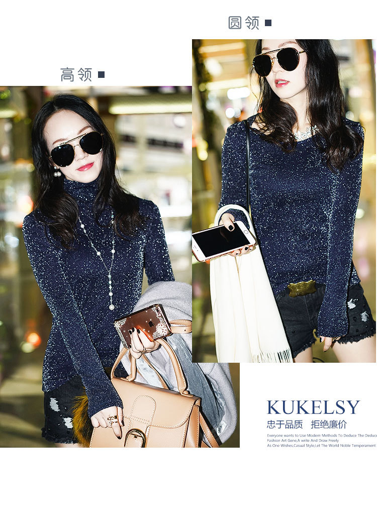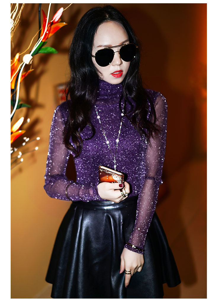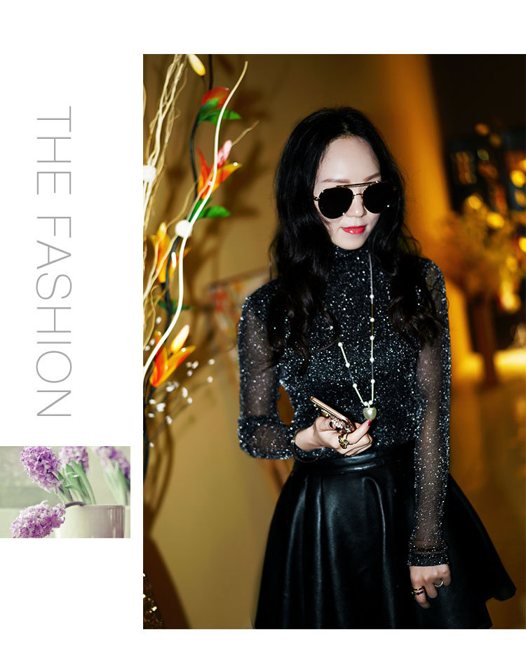 【双十一预热抢先购】SMFZ122新款潮流时尚气质修身长袖金银丝网纱加绒打底衫