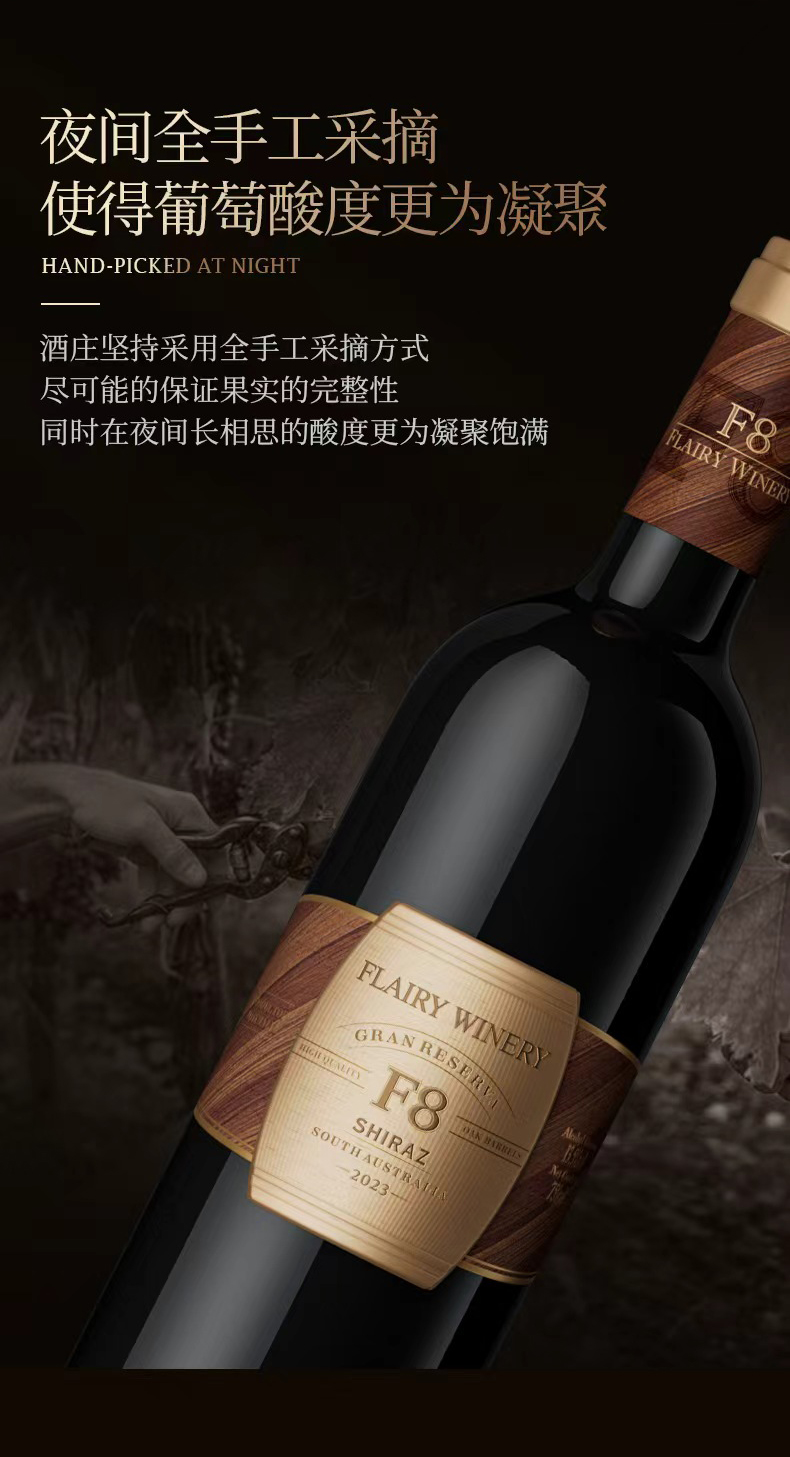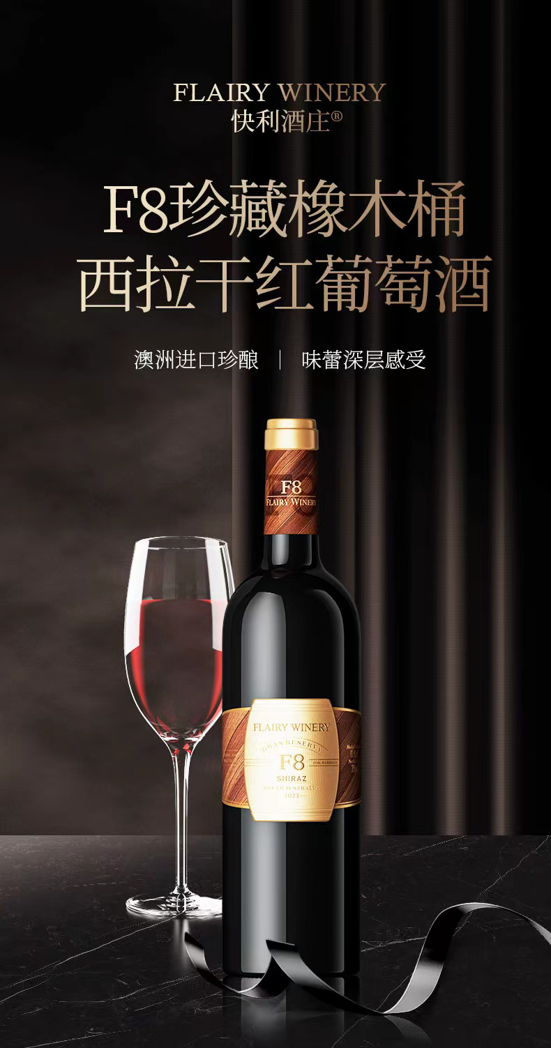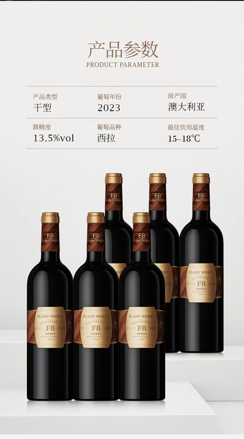 【澳大利亚百年酒庄 有机产品认证证书】F8珍藏橡木桶西拉干红葡萄酒750ml*6瓶(快利酒庄,高端红木纹圆柱包装)