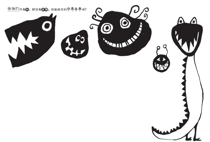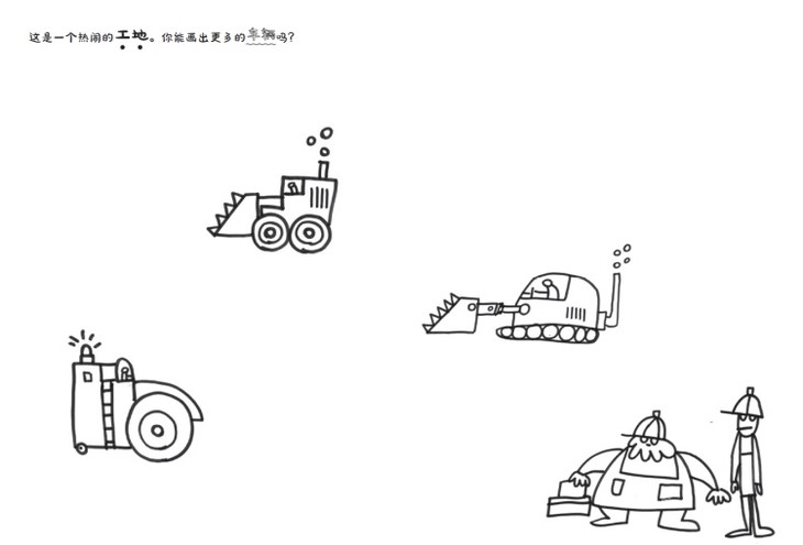 “创意涂鸦”系列的图画设计并不局限于“把图画完”,更重要的是如何发展和延续图片的思路。在这套书中,想象力是第一位的——书中每个场景都附有一句启发性的话,能引导、激励孩子们发挥想象力去编织自己的故事,同时发挥创造力接着构造出完整的故事画面。