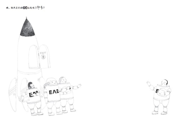 依样画葫芦式的绘画比较容易,但要发挥想象力、有创意地构图绘画就比较难了。我小时候就很喜欢绘画书,对此深有体会,可这也是“很刺激”的一件事。在与学生们讨论时,我们就反复设想:自己若身为一个孩子,面对这样的创意涂鸦书,会有怎样的反应呢?孩子们会发现,这些图画设计并不局限于“把图画完”,更重要的是如何发展和延续图片的思路。这样引导孩子们接着画几笔看似简单,但我们不可低估它的能量。那些看似最简单的几笔补画,却有可能展现出令人惊讶的创意,能唤起观赏者极大的共鸣。