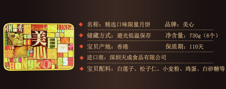 香港进口美心月饼精选口味限量版月饼(什锦口味) 730g铁盒