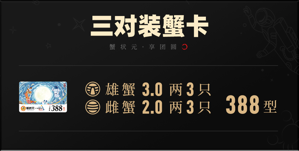 【蟹状元大闸蟹礼品卡】388型雄蟹3.0两/3只雌蟹2.0两/3只