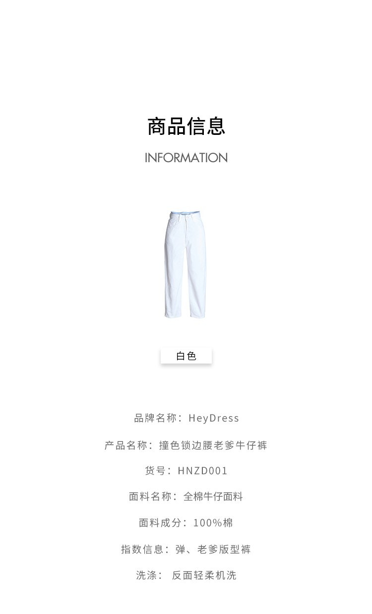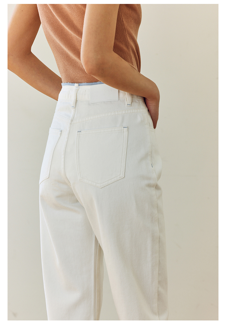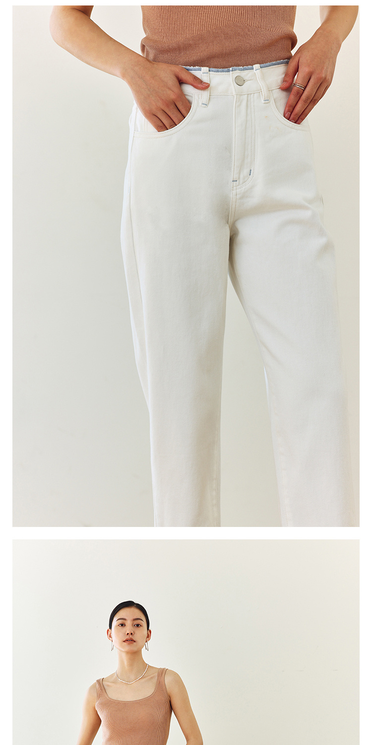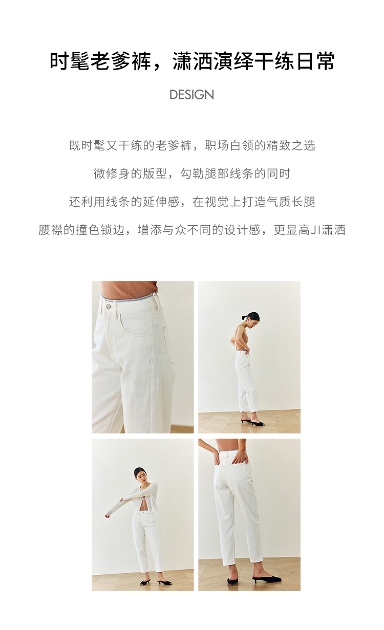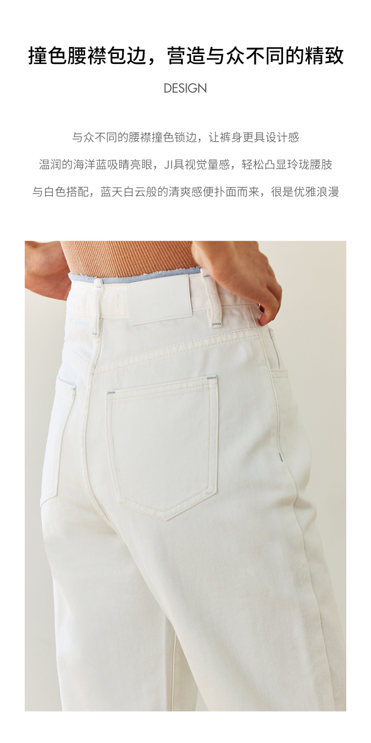 撞色锁边腰老爹牛仔裤