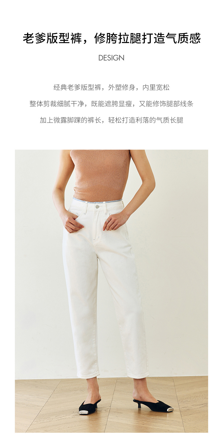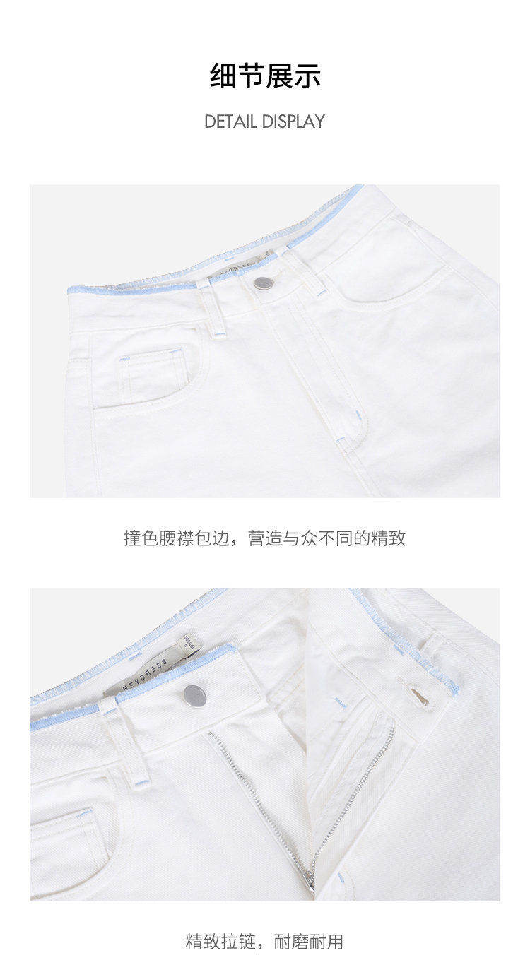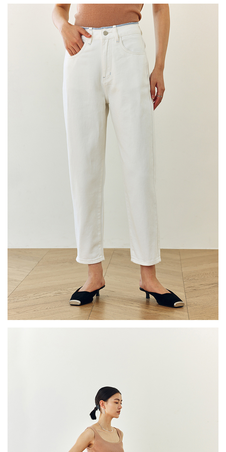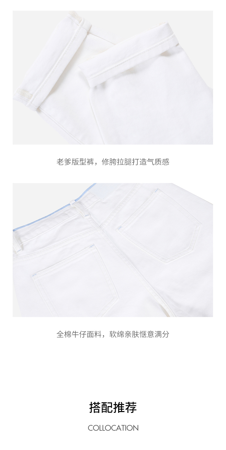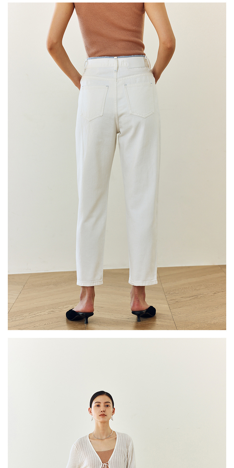 撞色锁边腰老爹牛仔裤