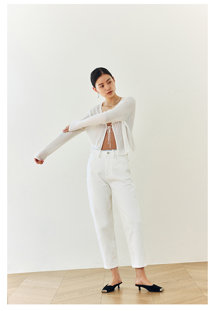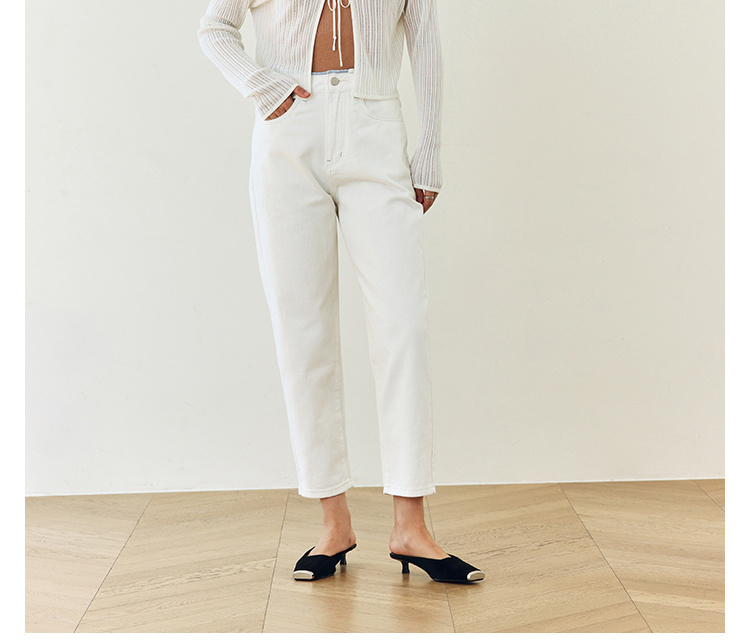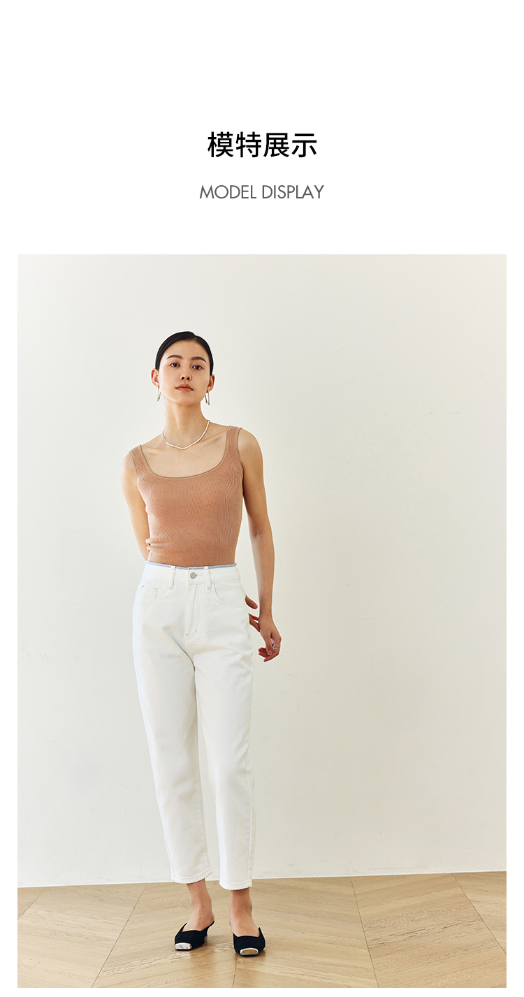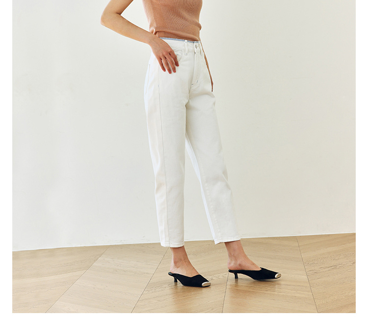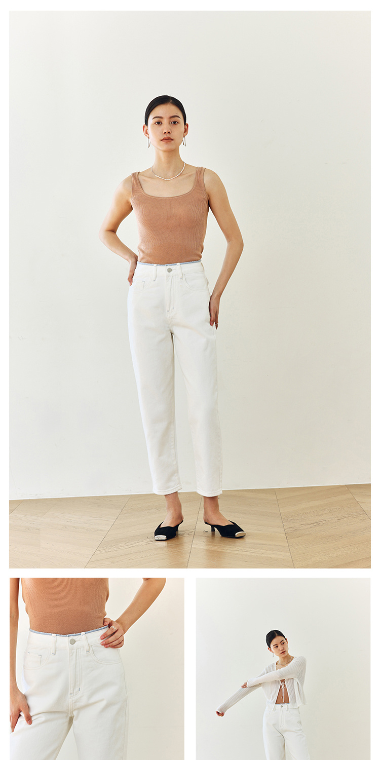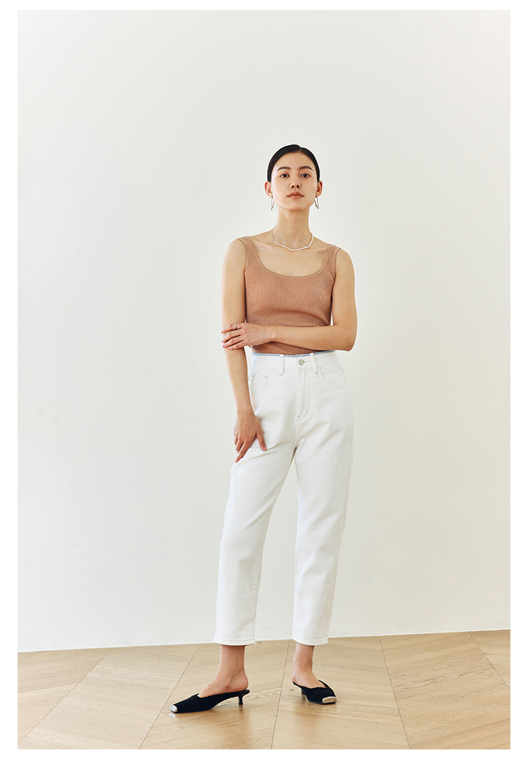 撞色锁边腰老爹牛仔裤