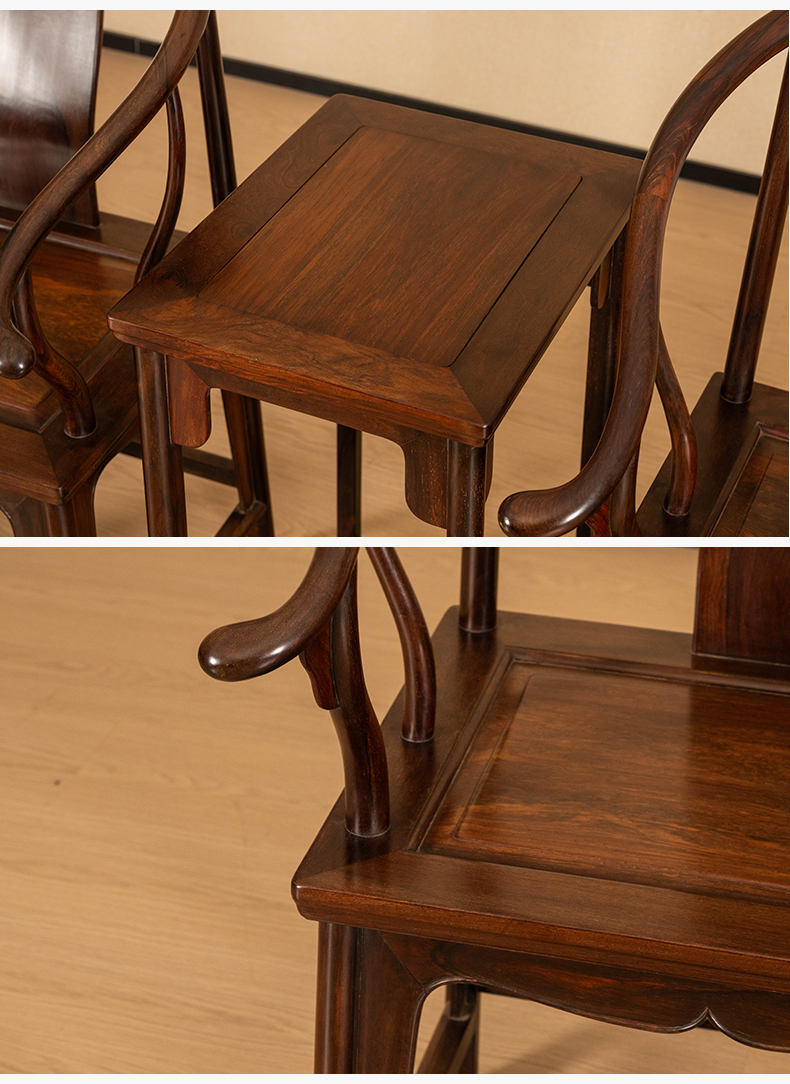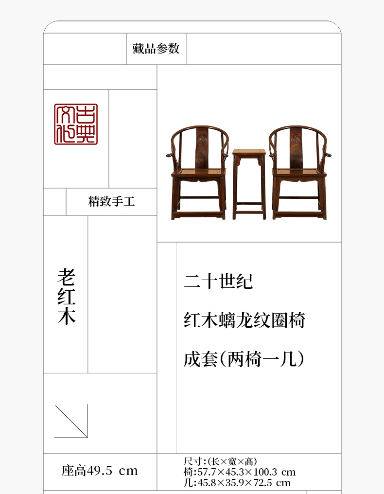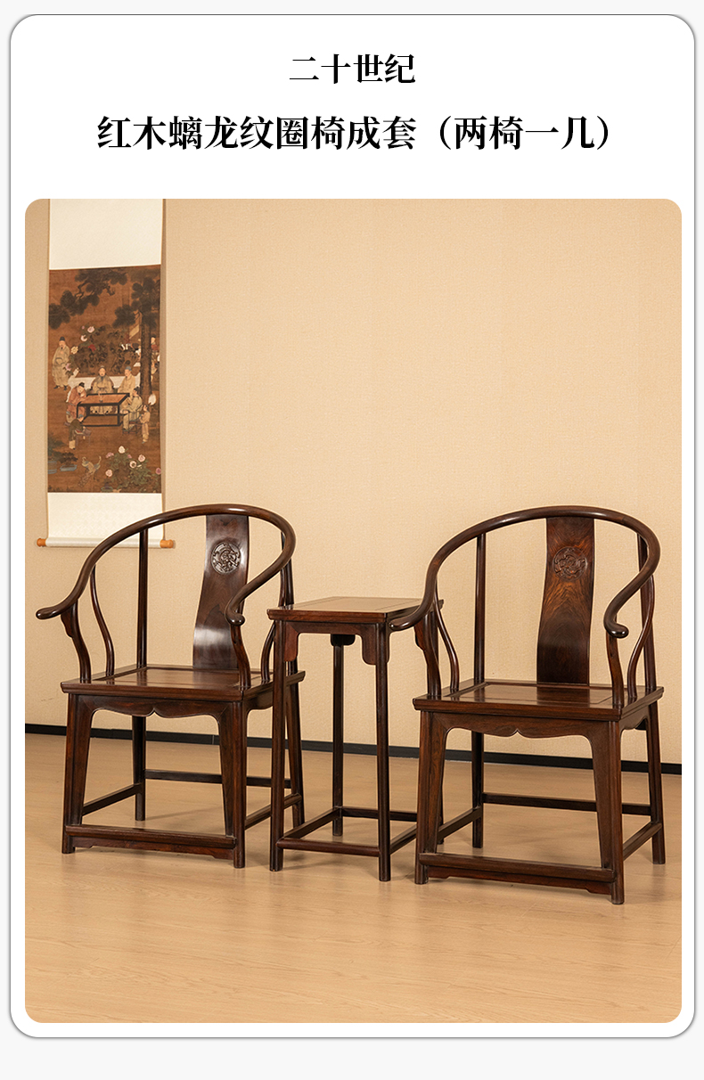 二十世纪 红木螭龙纹圈椅成套(两椅一几)