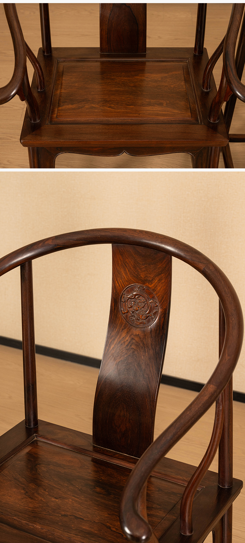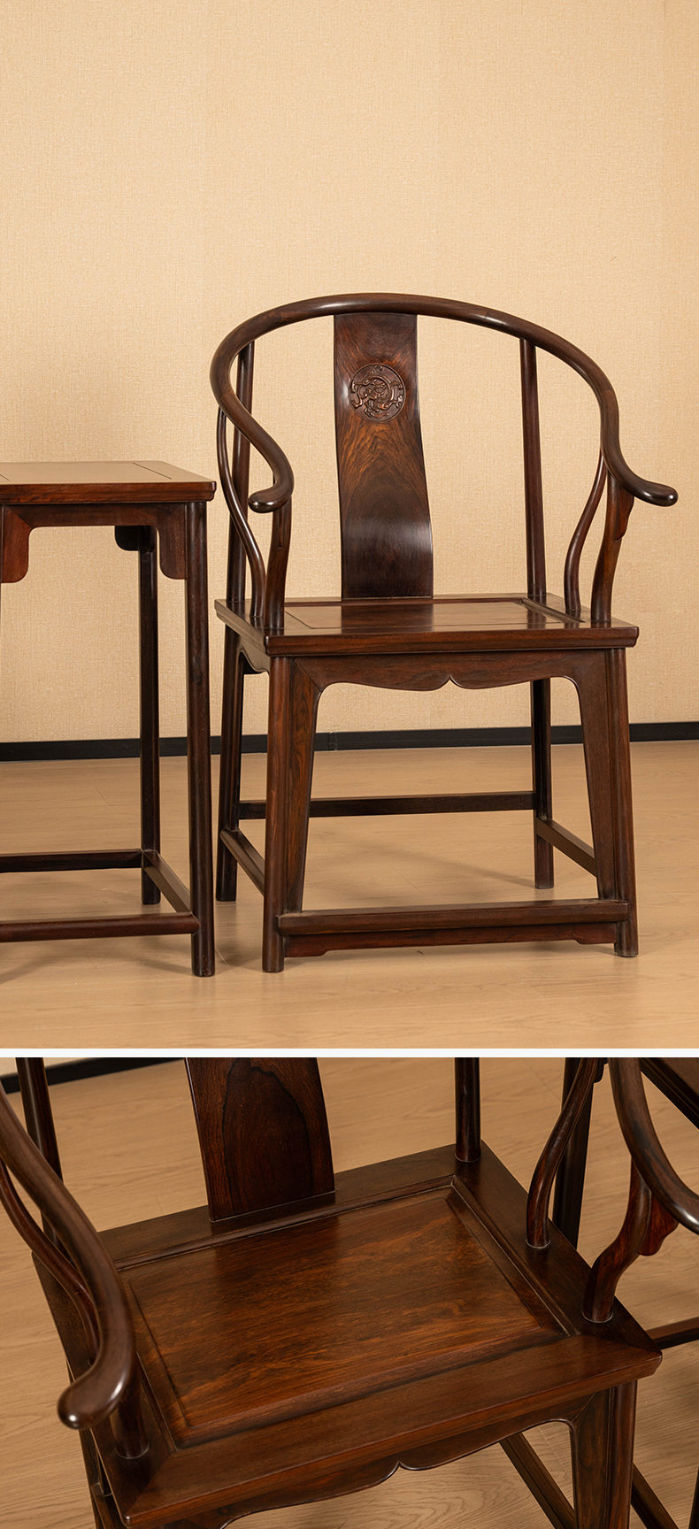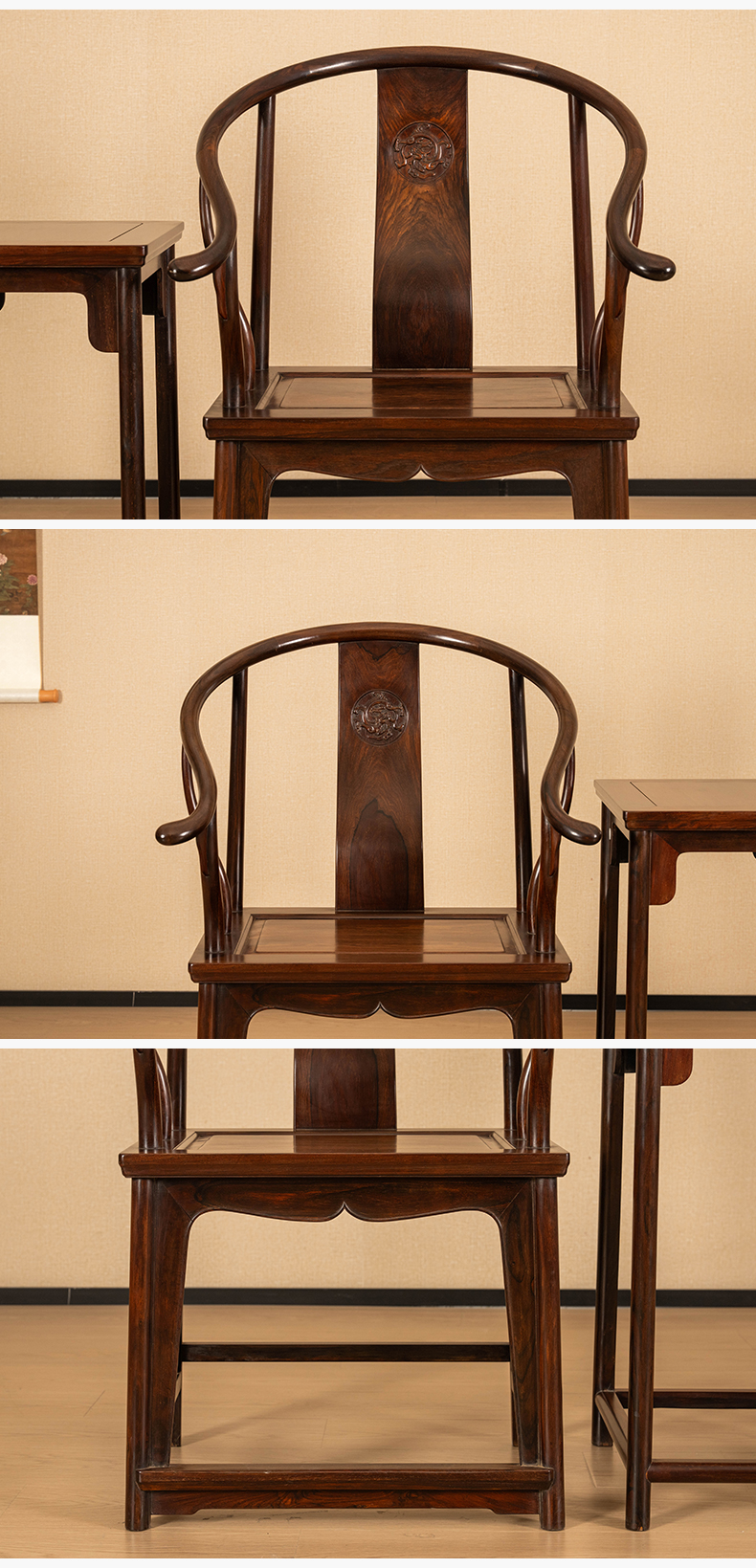 二十世纪 红木螭龙纹圈椅成套(两椅一几)