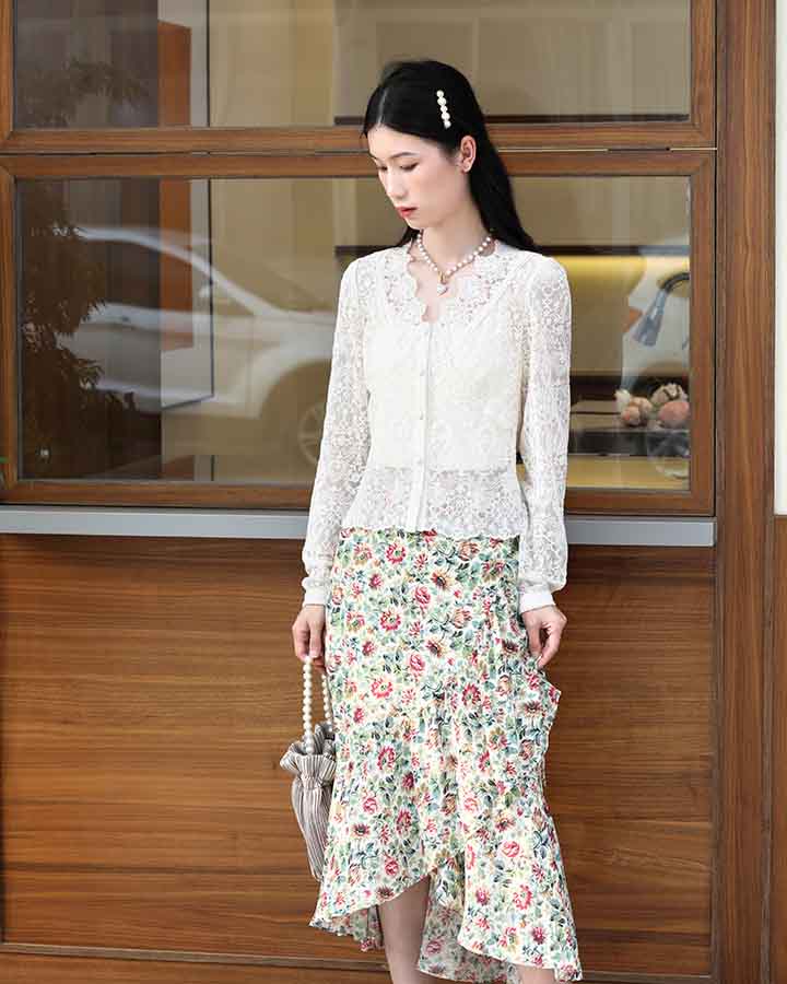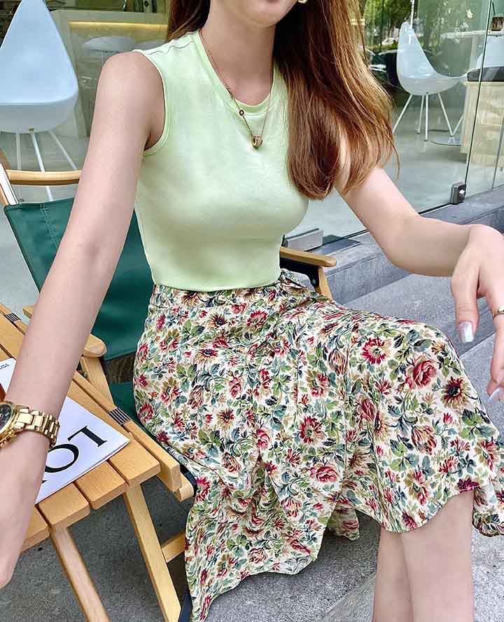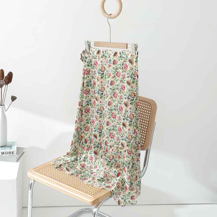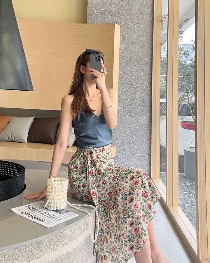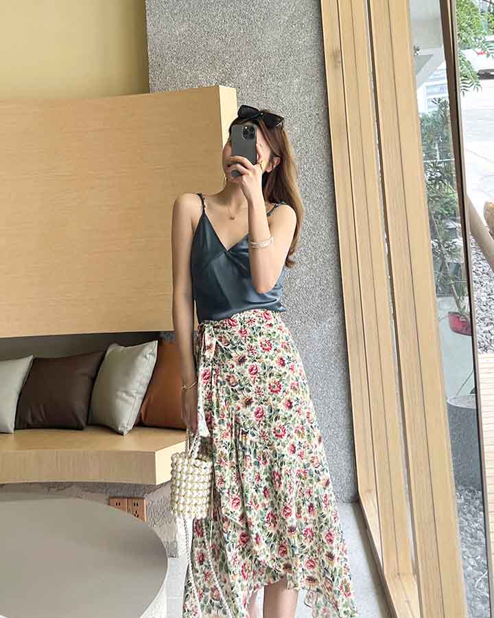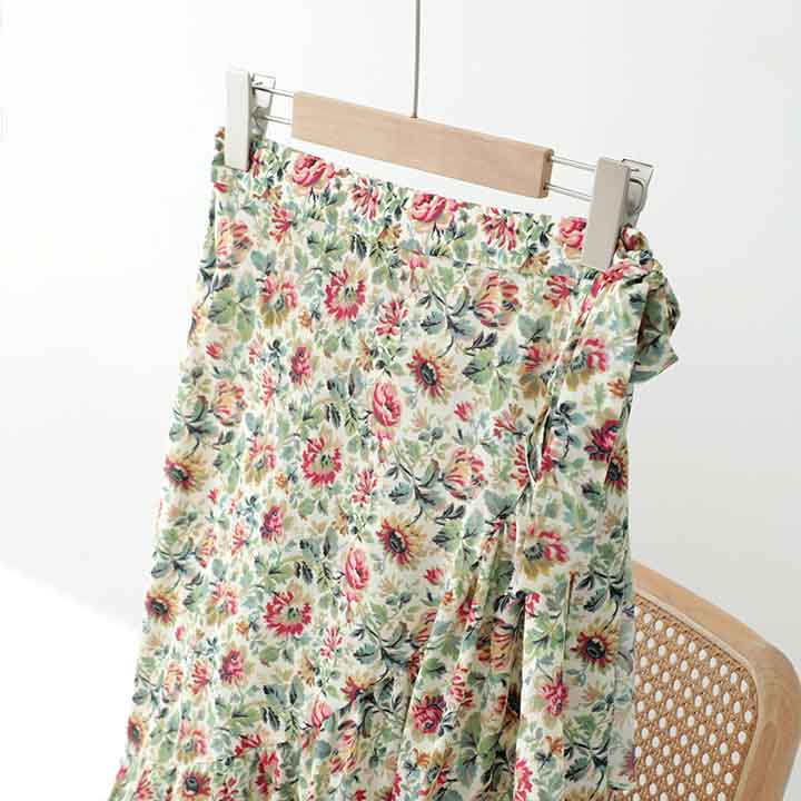 顺丰包邮洛诗琳73941夏季新款双皱绑带真丝碎花半身裙0997