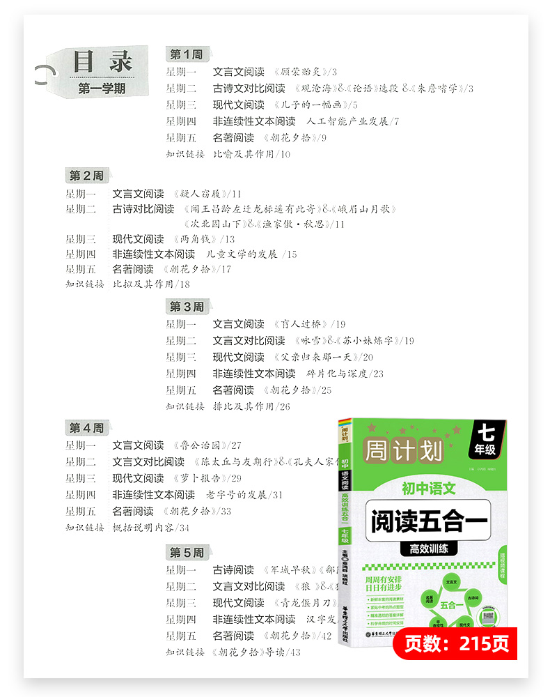 2025周计划初中语文阅读高效训练五合一古诗词文言文现代文名著阅读赠视频课程789年级可选