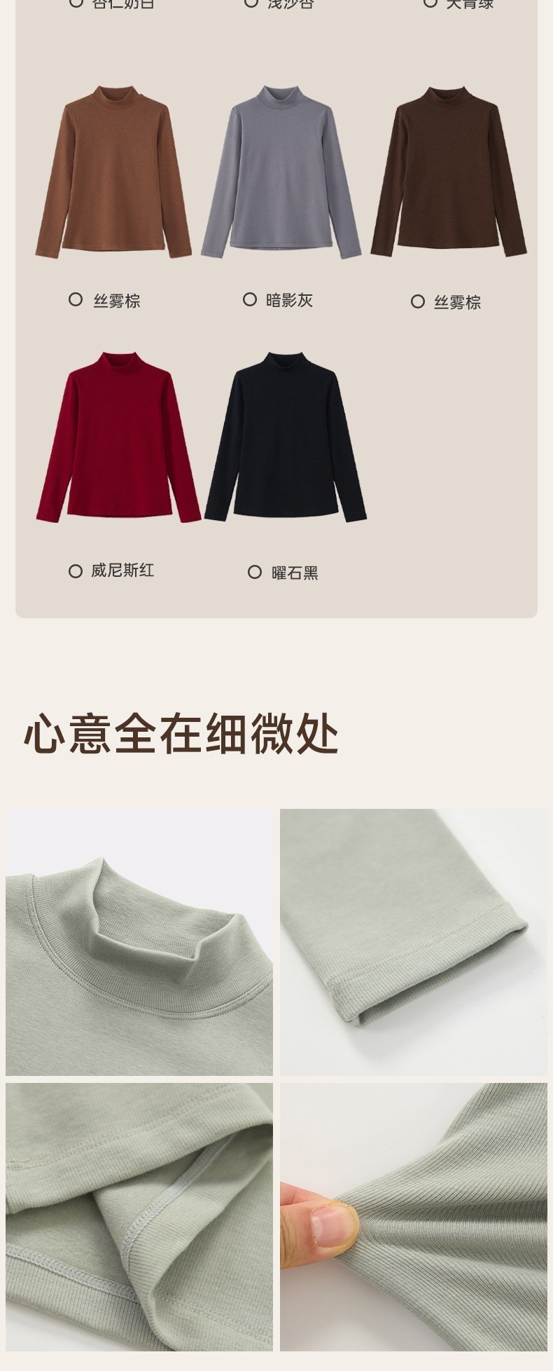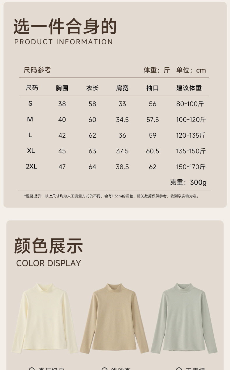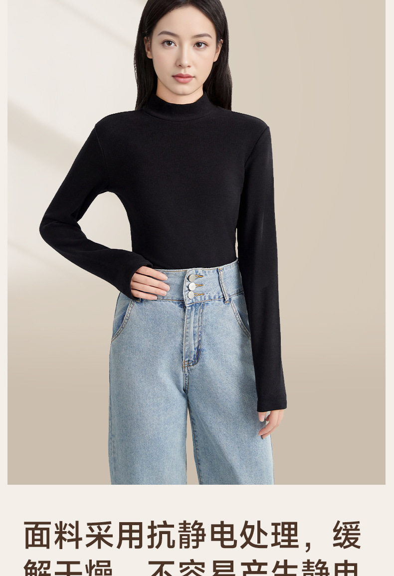 「自」全新升级【铂金会员128/天猫169/差价41】(02925)洛诗琳德绒半高领打底衫2025秋冬加绒加厚显瘦保暖肌底衣