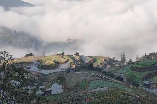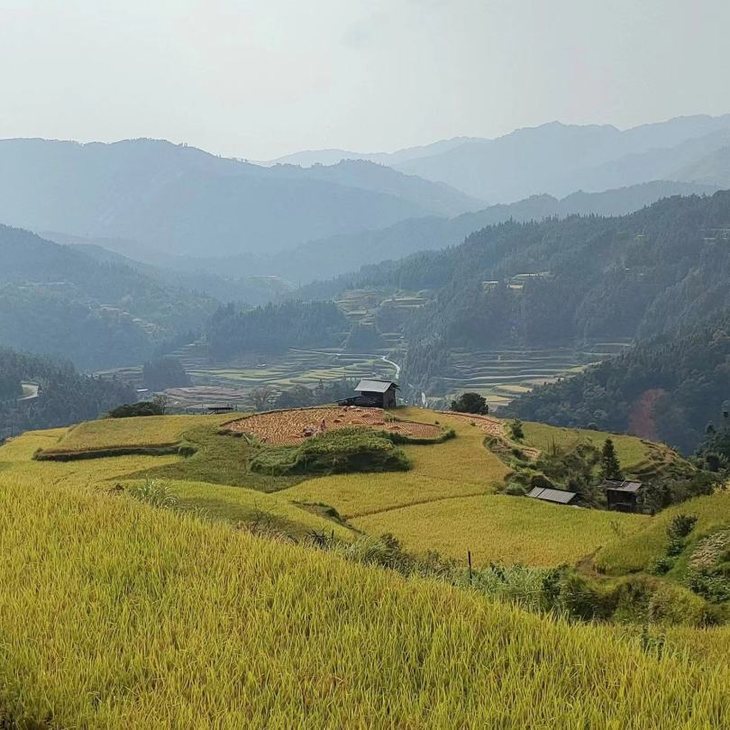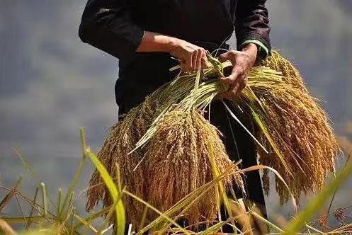 金秋十月,贵州梯田也早早染上了丰收的颜色,一棵棵在成熟中的水稻正等待着农民来收获。
