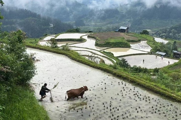 因为是梯田,大型农具没有用武之地,直到现在,当地依然是采用传统的水牛耕地,所以当地产出的大米也被称为“牛耕米”。