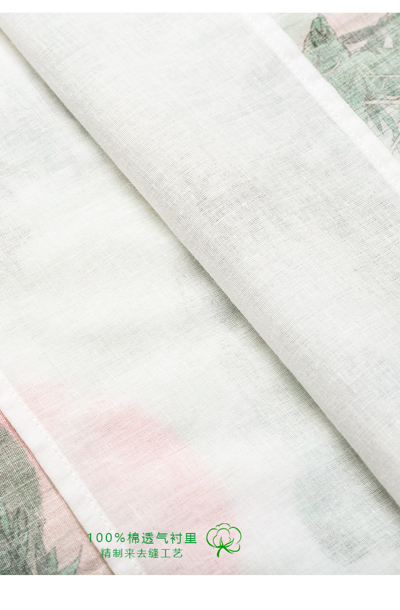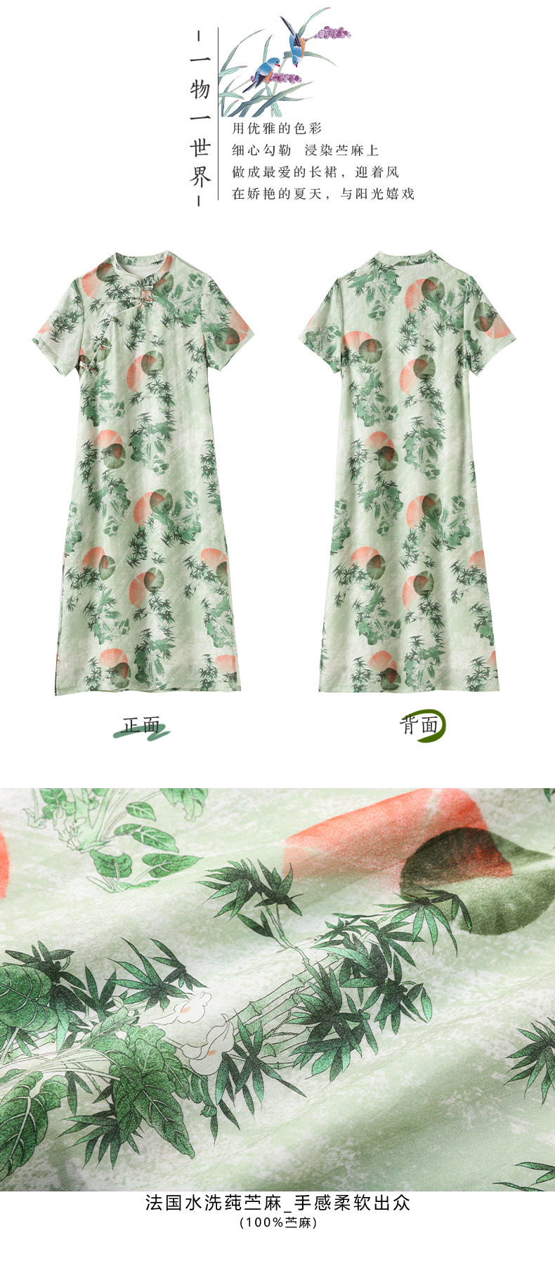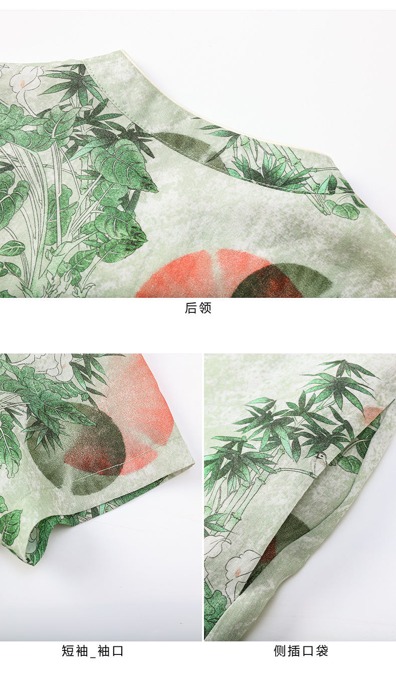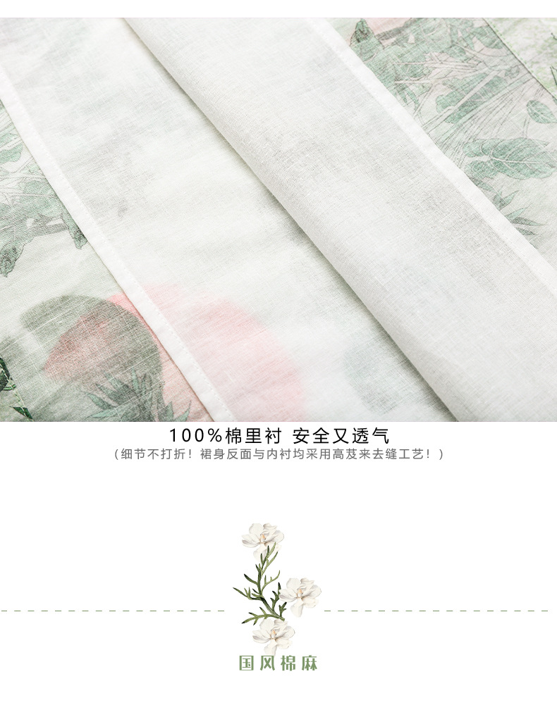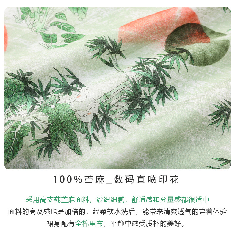 HM-S351苎麻印花改良式旗袍裙立领 夏季新款短袖文艺复古竹子花色连衣裙