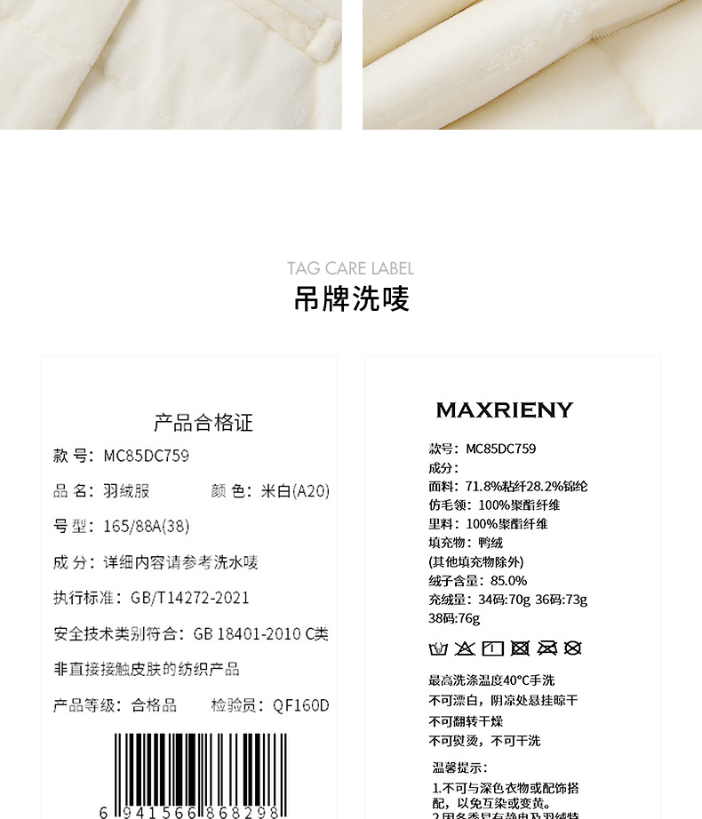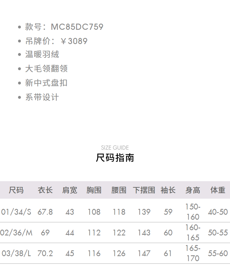 玛克门店发货:MAXRIENY中式羽绒服(货号:MC85DC759)