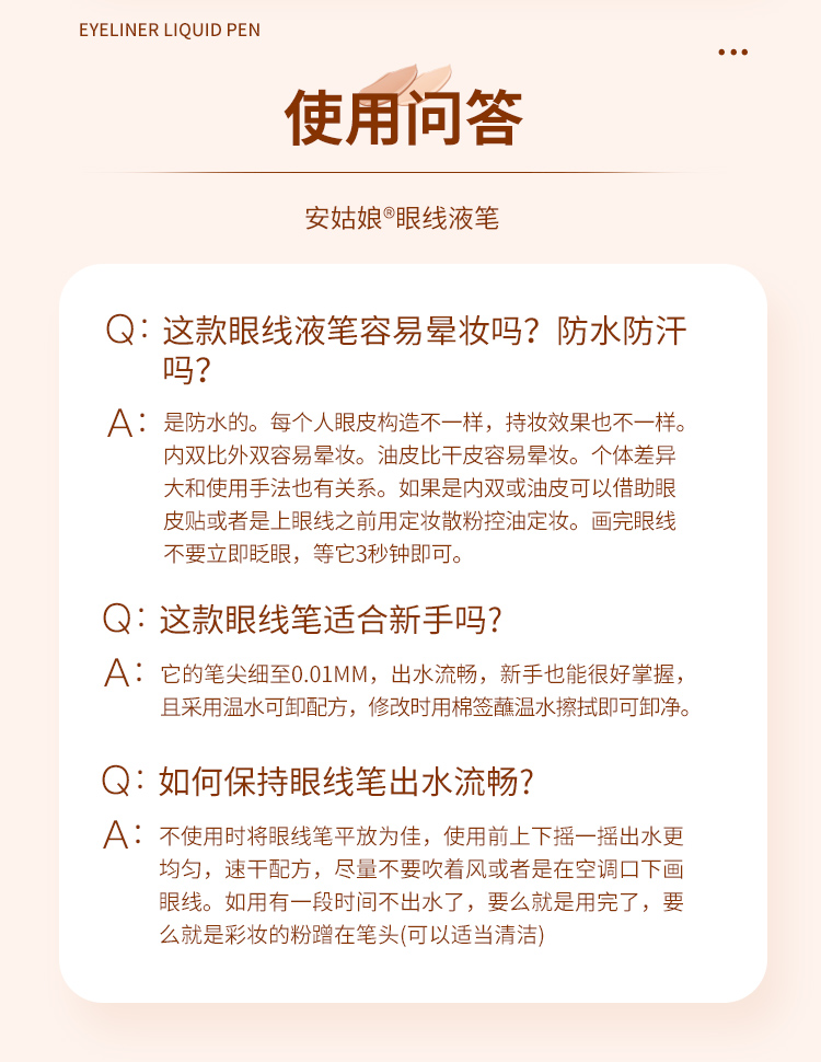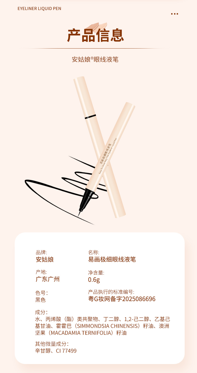 安姑娘|纯素眼线液笔 极细可画下睫毛和卧蚕线 速干防水持久不晕染初学者持久眉笔眼线笔自然持久防水