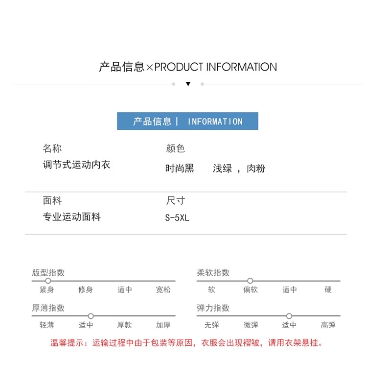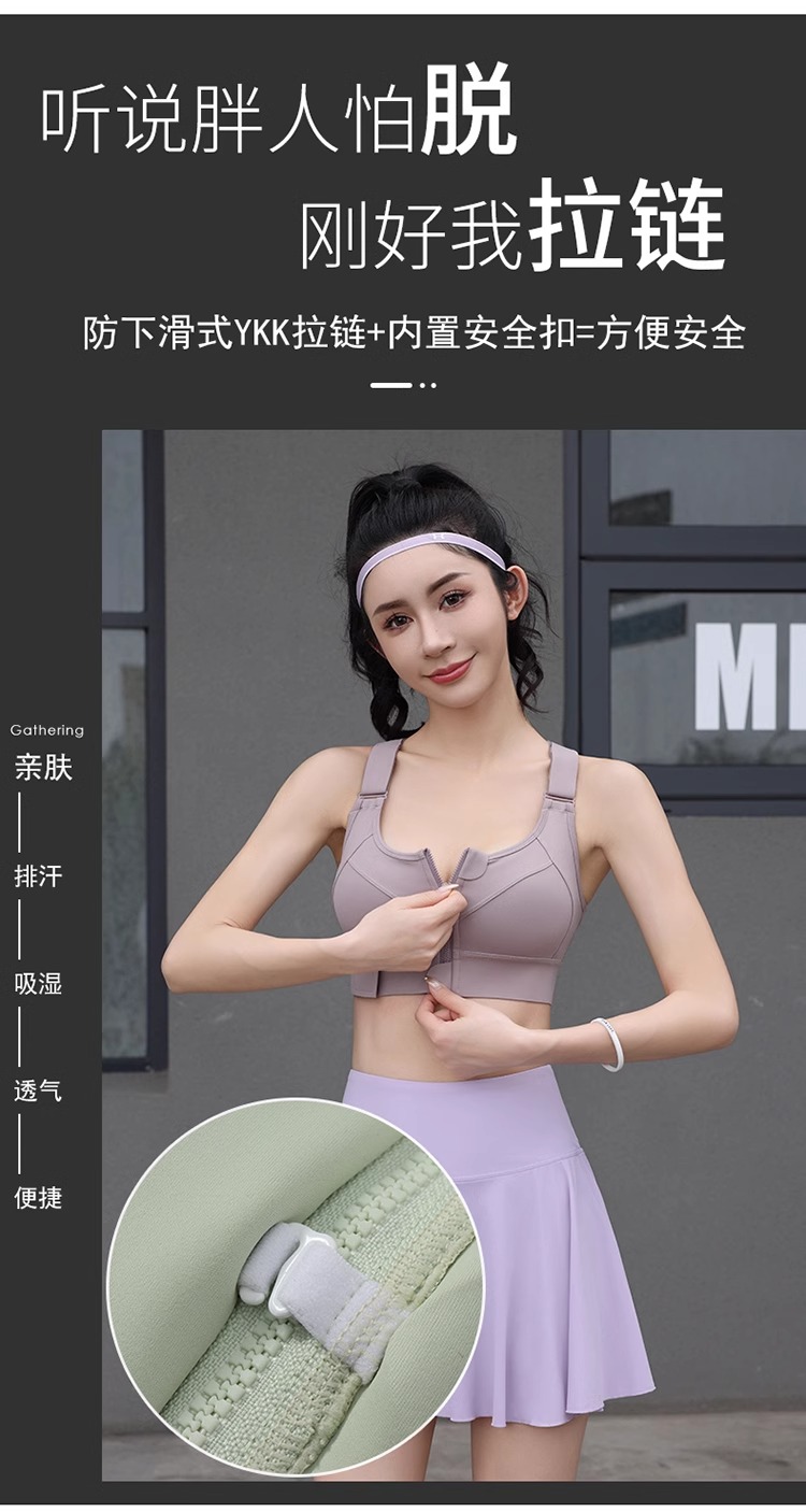 跃牌(呗咪纷纷系列)YKK拉链高强度运动内衣女防震无痕跑步瑜伽服WX2301