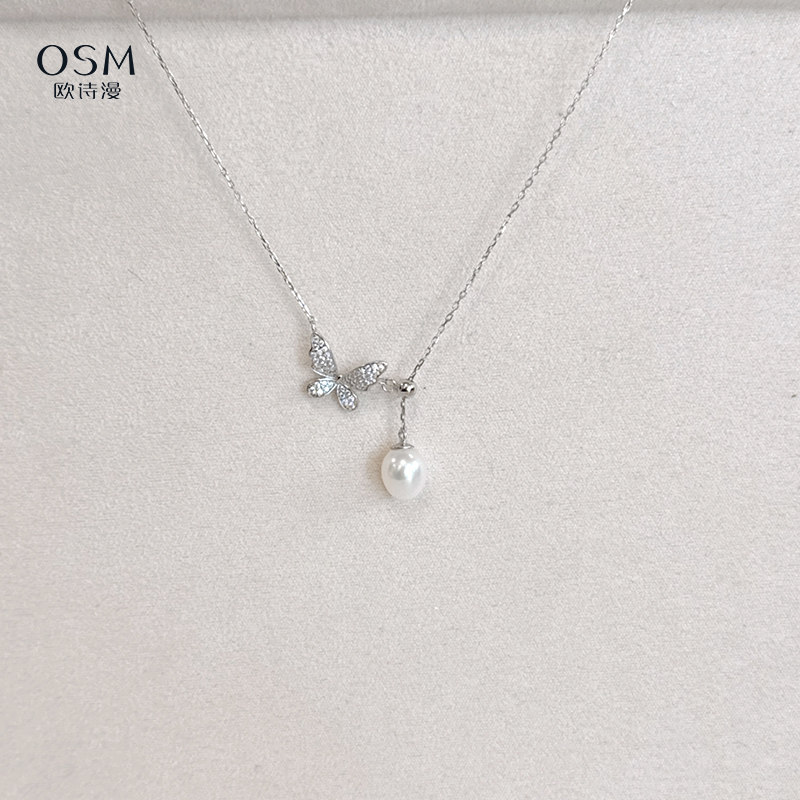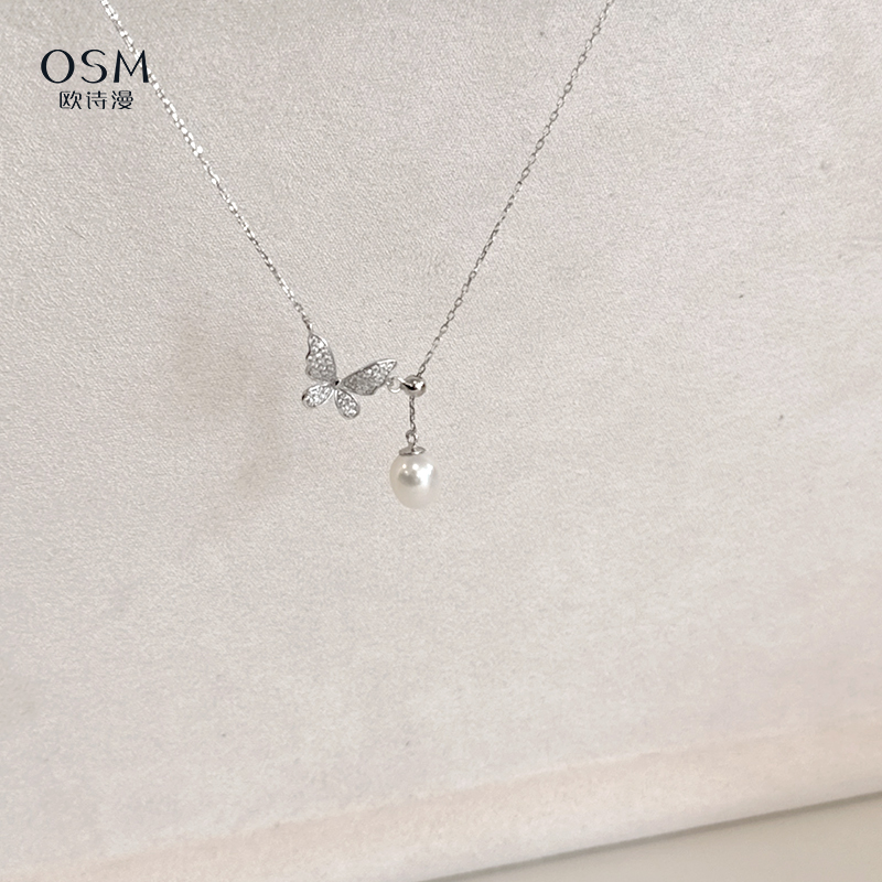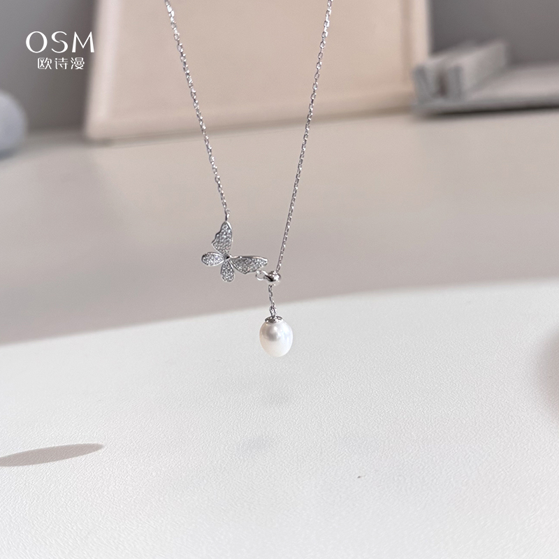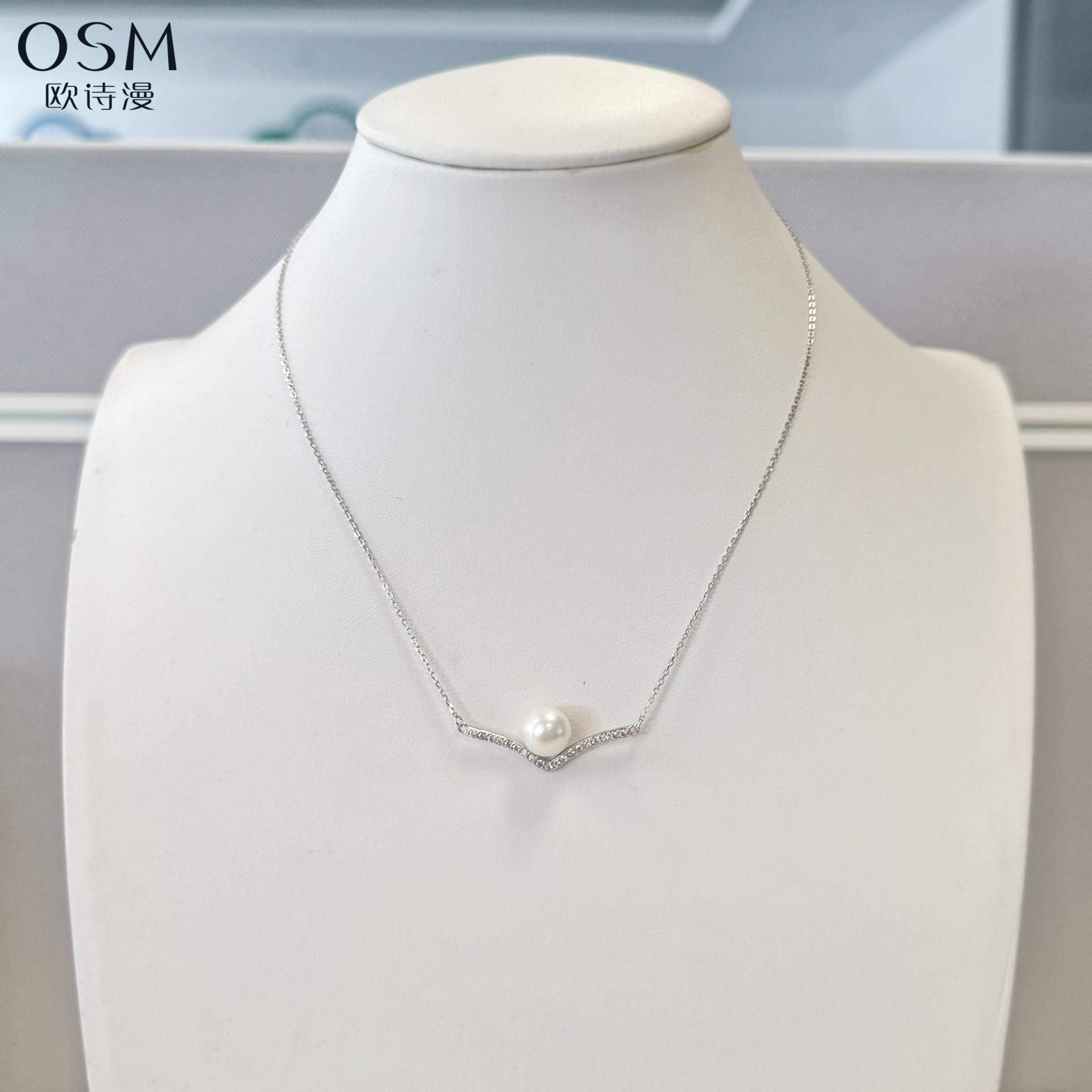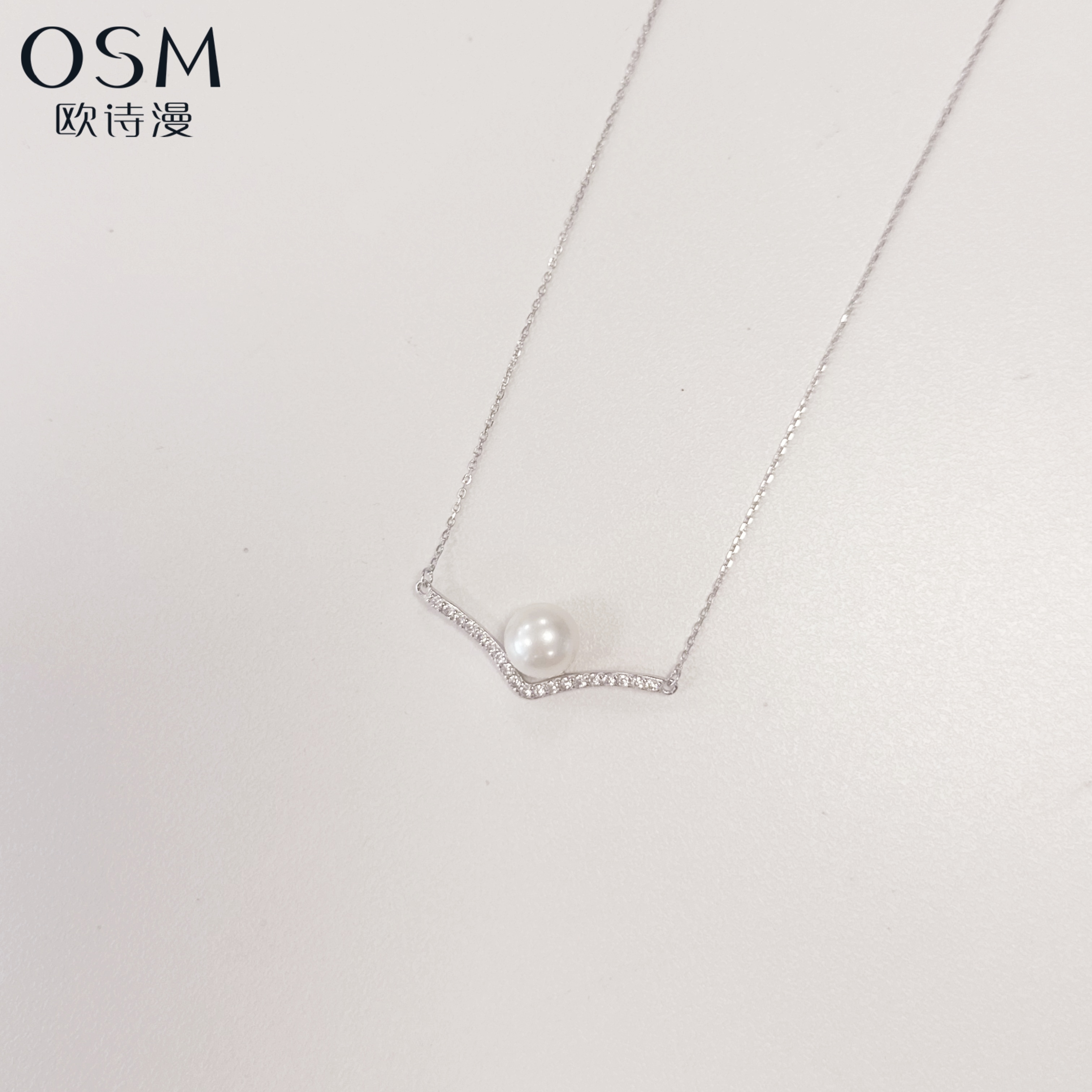 欧诗漫珍珠项链锁骨链 925银珍珠吊坠(多款可选)