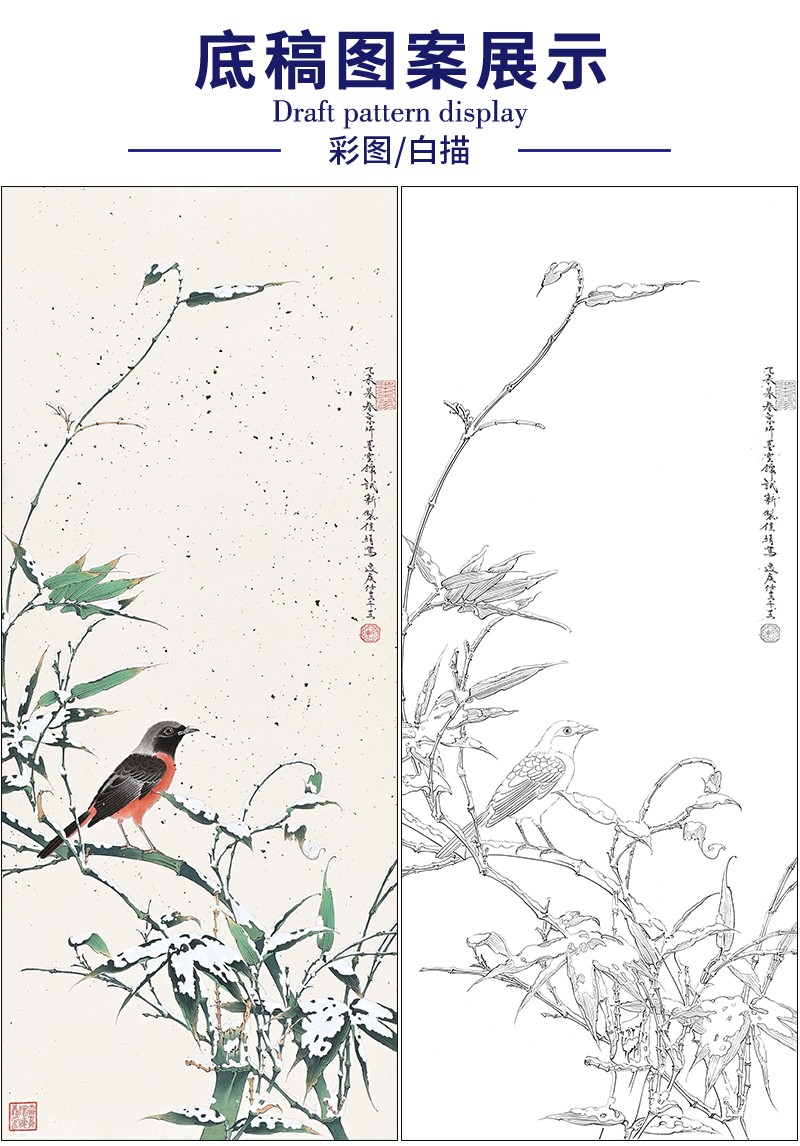 任重花鸟工笔画白描底稿《雪景小鸟》临摹勾线高清打印稿RD62