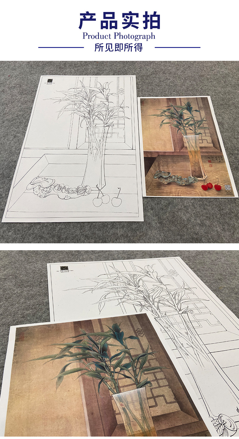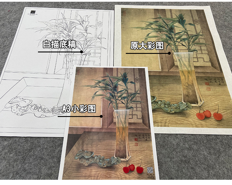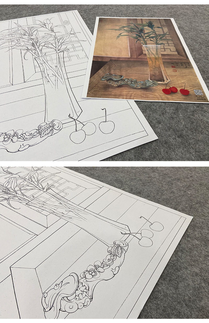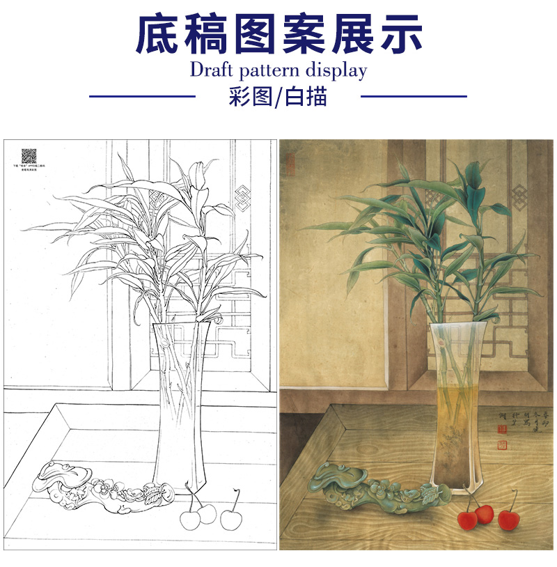 【大彩图】李晓明工笔画白描底稿《玉堂富贵》花瓶如意临摹勾线花鸟线稿K121