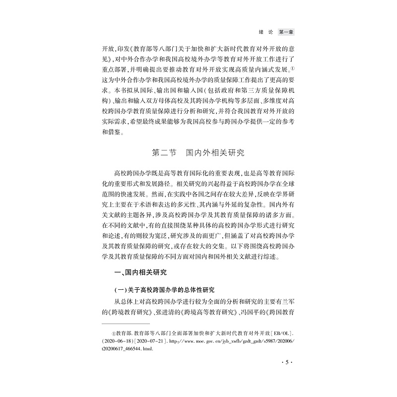 本书为作者博士学位论文。基于网络治理理论和利益相关者理论,围绕高校跨国办学教育质量保障这一核心命题展开研究。将利益相关者定位为利益相关者组织,从四个层面和多个维度对高校跨国办学教育质量保障进行解构和分析,并从网络的整体视角,对高校跨国办学教育质量保障进行重构。在此基础上,一方面提出高校跨国办学教育质量保障的网络治理架构,另一方面基于本研究对网络治理的理解和网络的嵌入性,从结构嵌入、制度嵌入和关系嵌入三个方面探讨高校跨国办学教育质量保障的作用机制。最后将理论与实践相结合,思考和探讨我国高校跨国办学(中外合作办学)教育质量保障的方略。