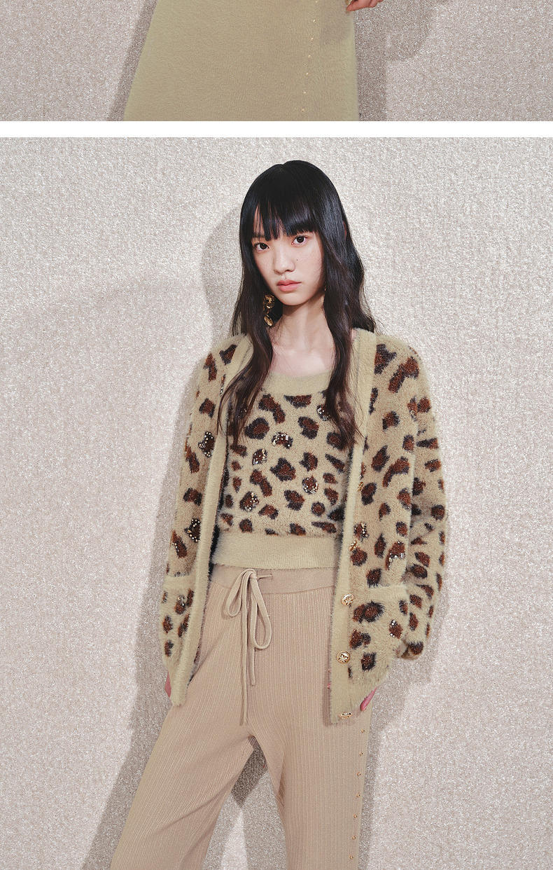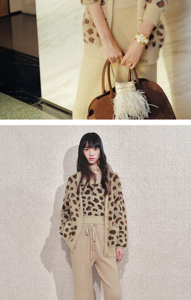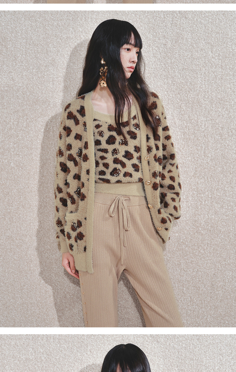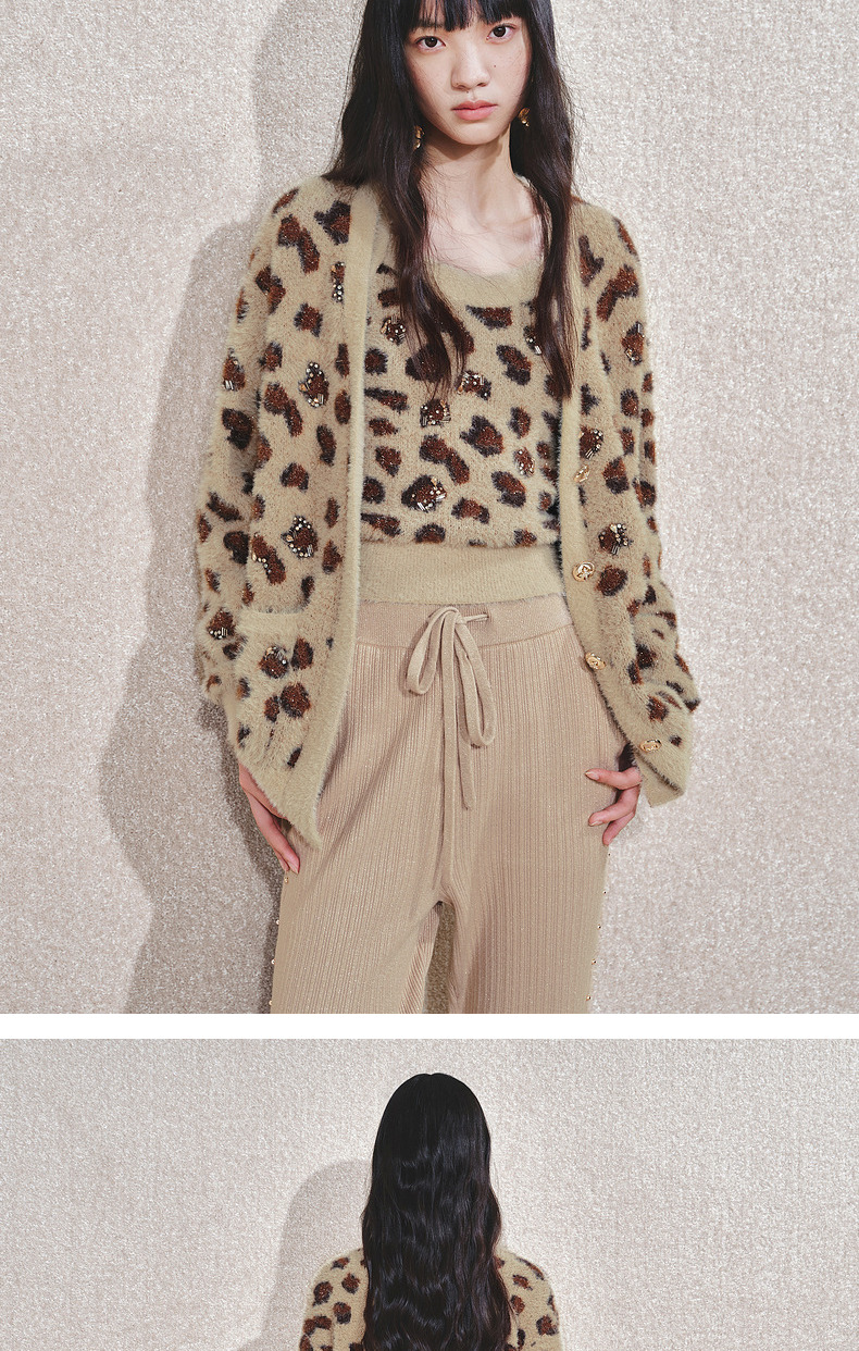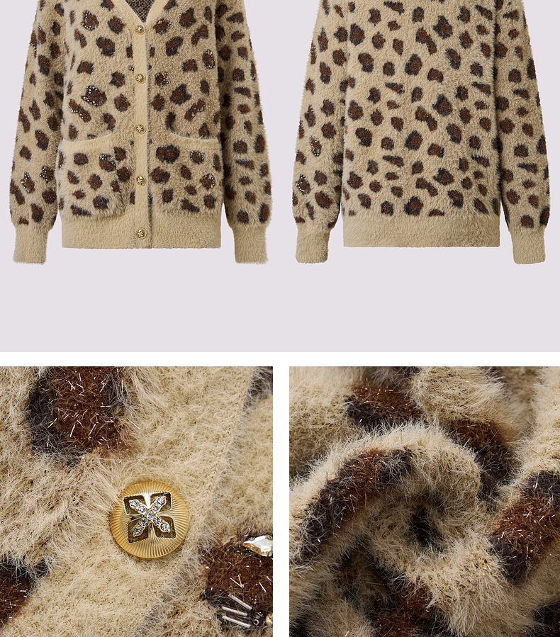 【冬日逸境-商场同款】MAXRIENY钉珠豹纹复古开衫外套女24冬新款(货号:MC85JA793)