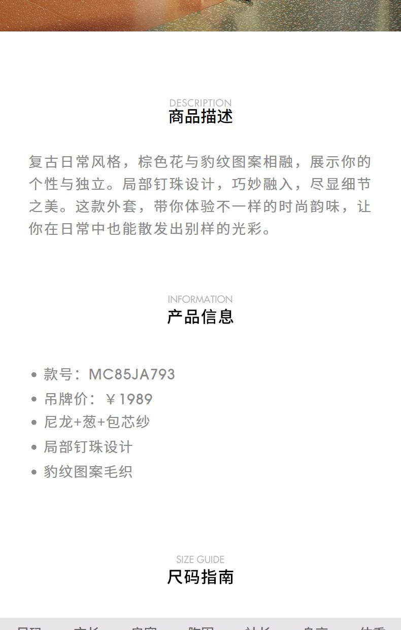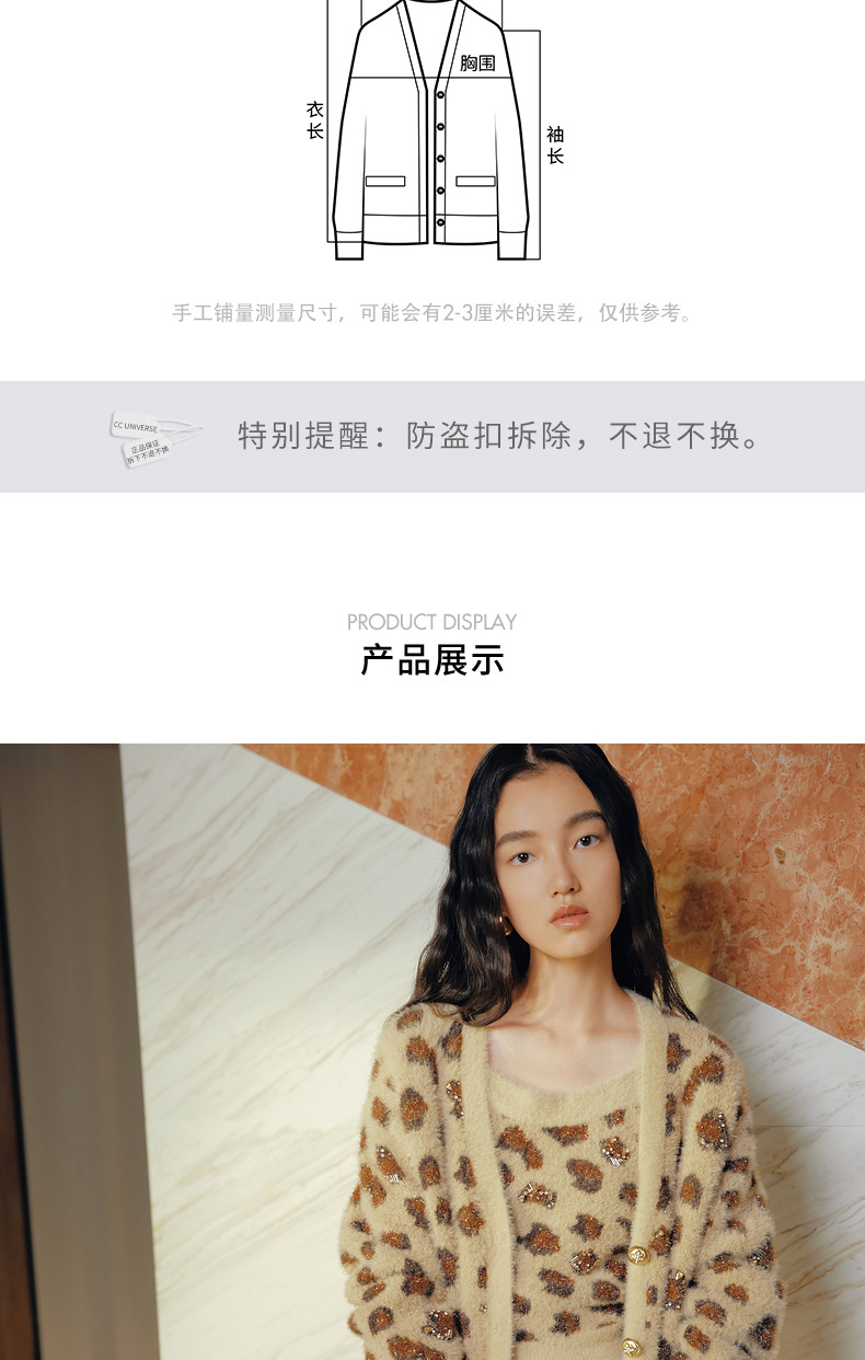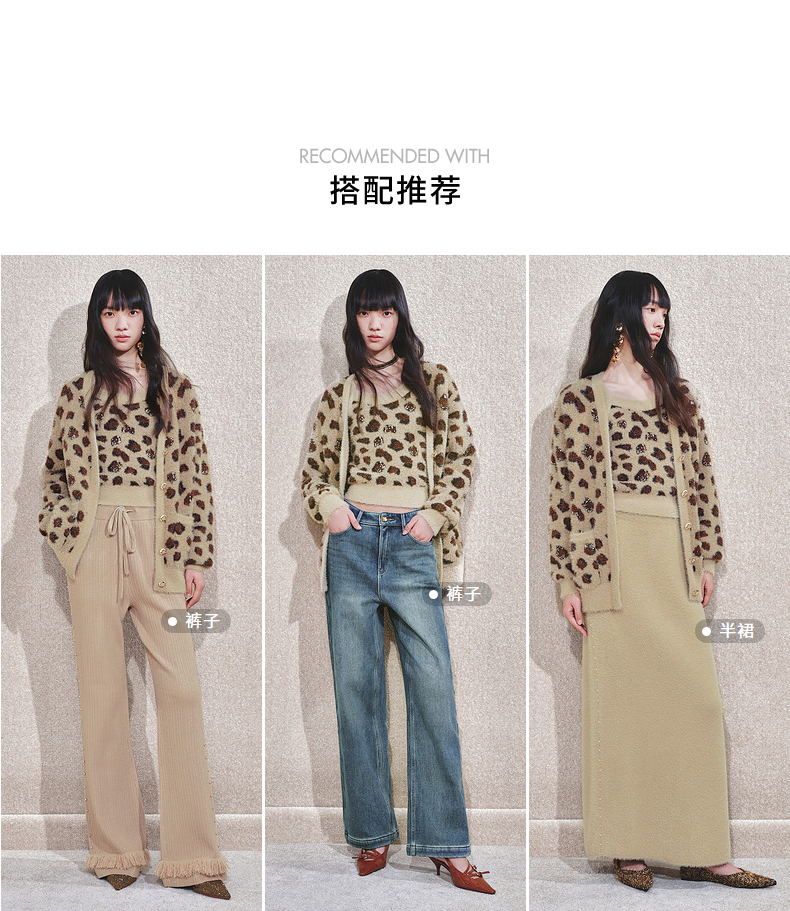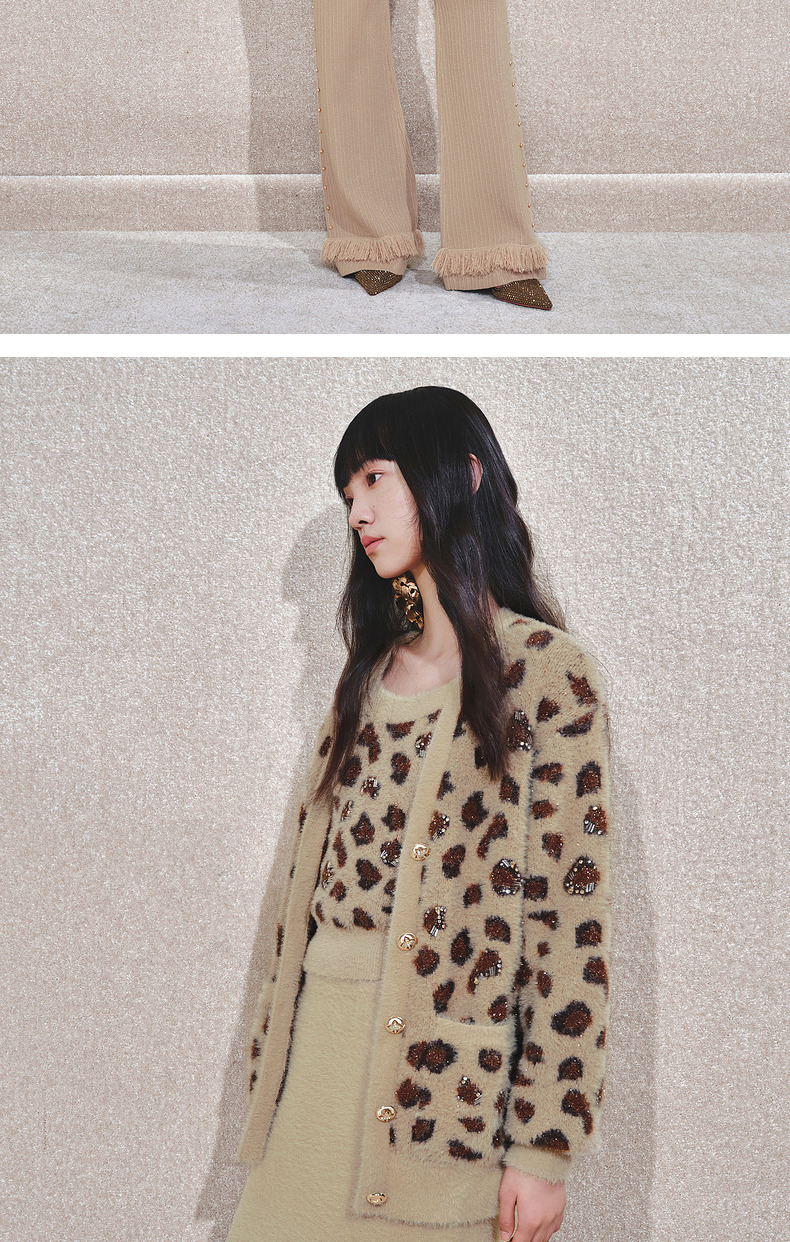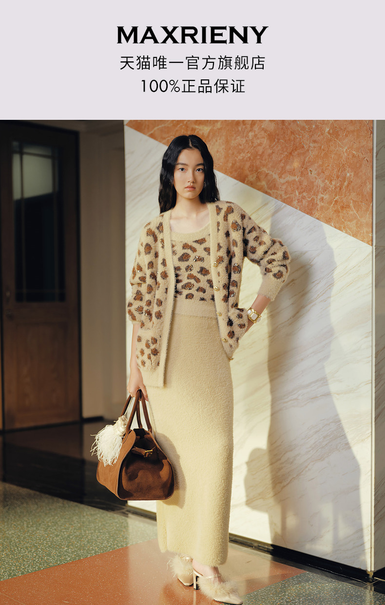 【冬日逸境-商场同款】MAXRIENY钉珠豹纹复古开衫外套女24冬新款(货号:MC85JA793)