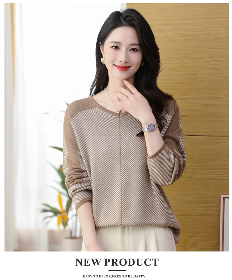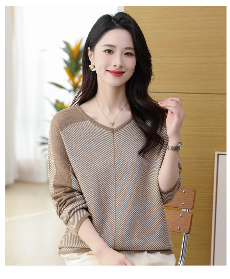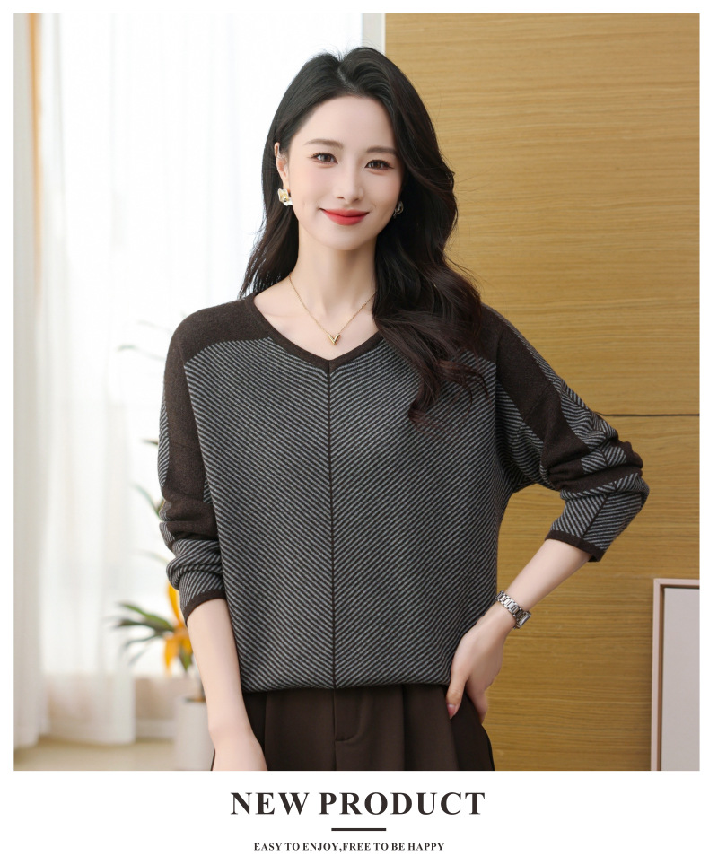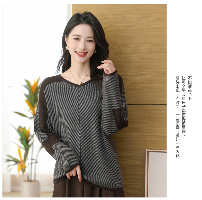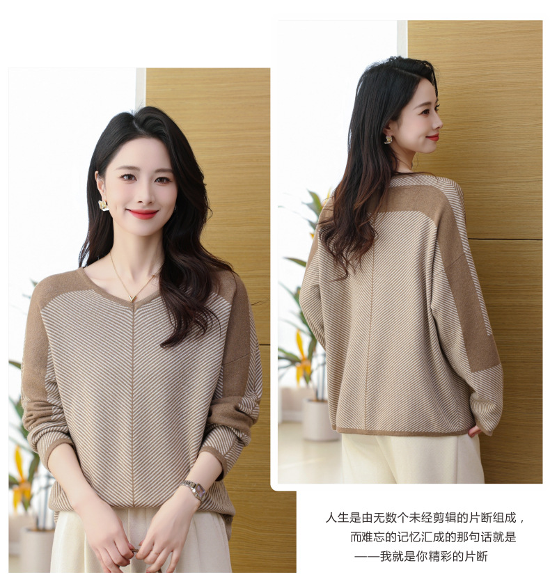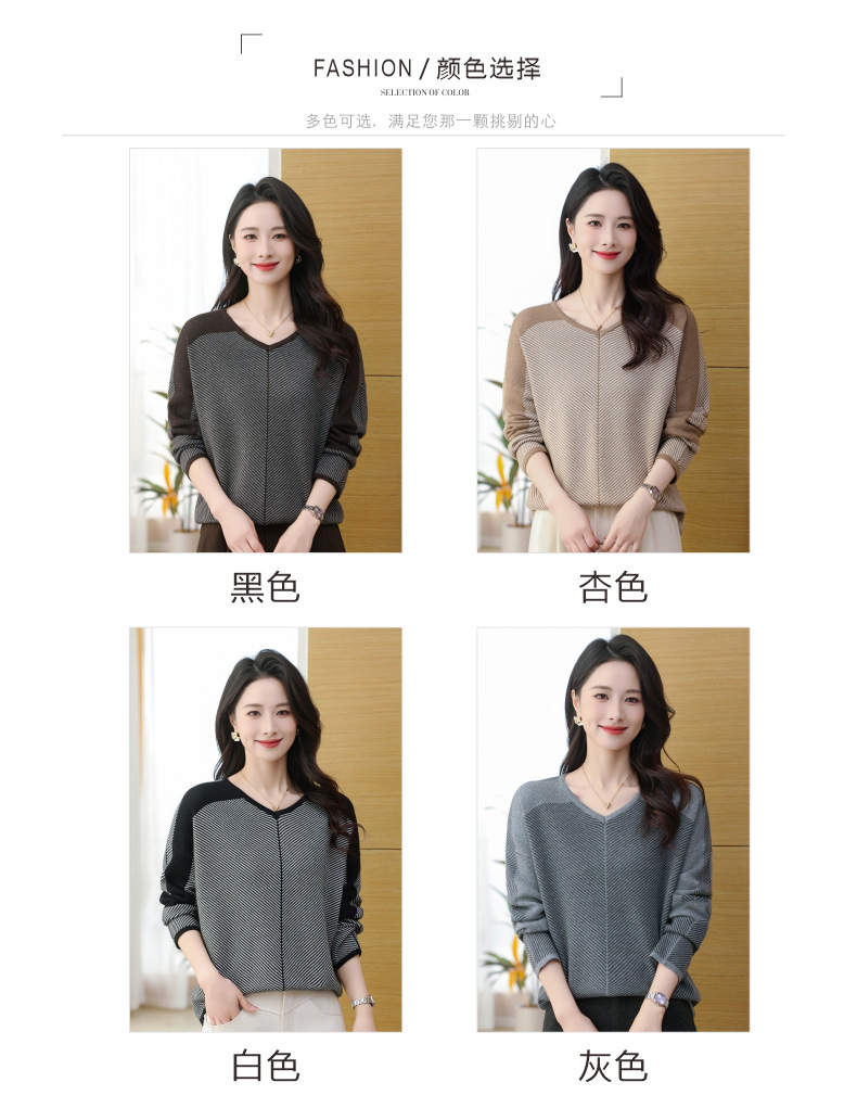 CC-SYX-9036桃心领打底衫女秋冬条纹撞色上衣时髦毛衣大码羊毛针织衫