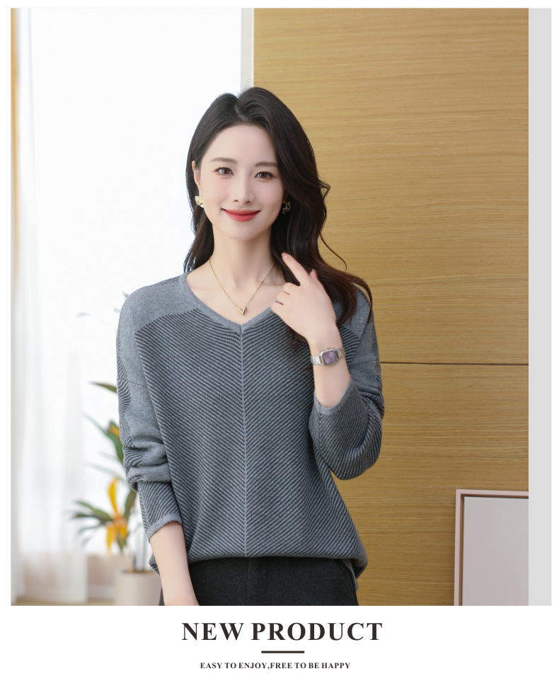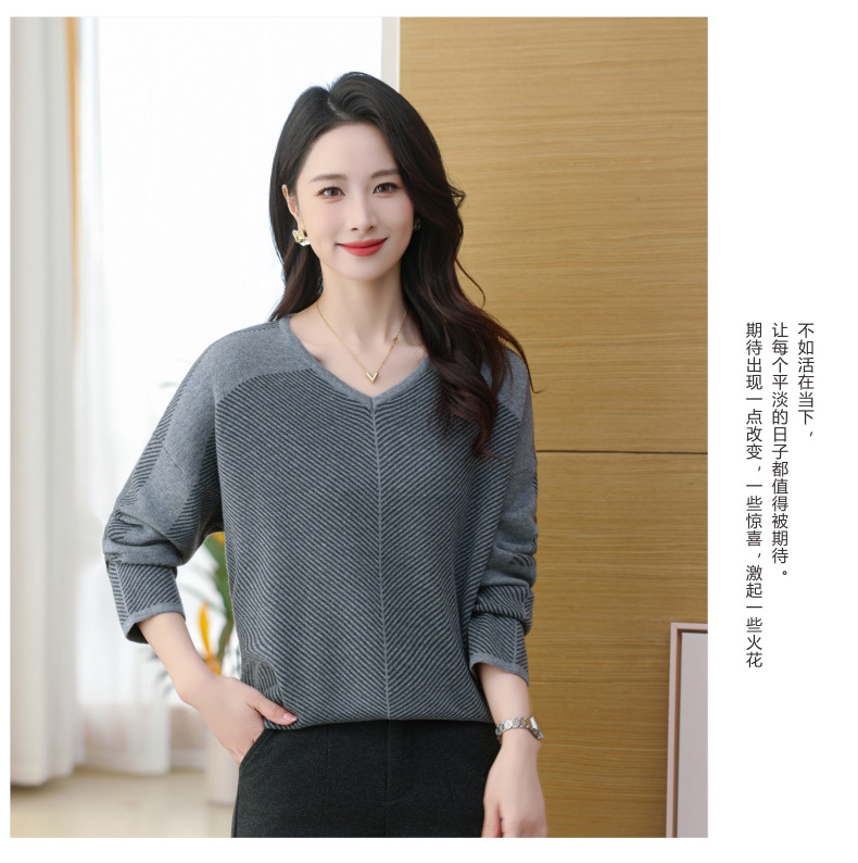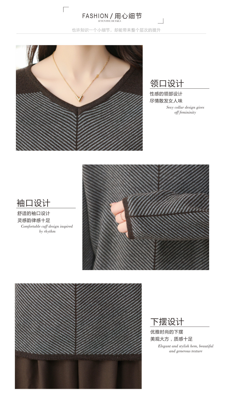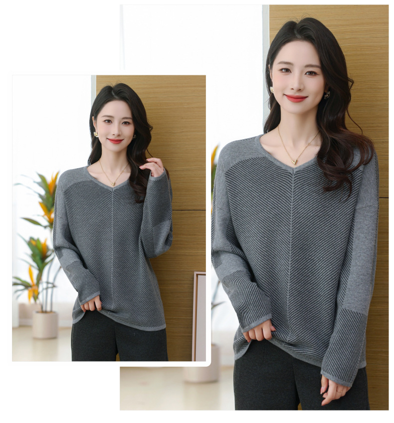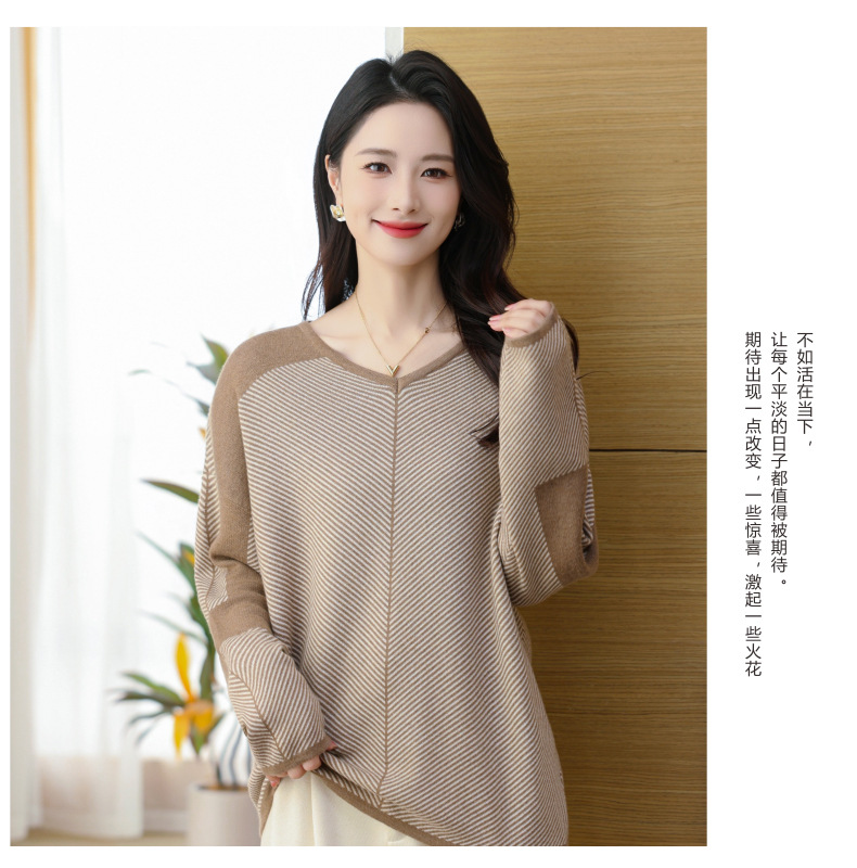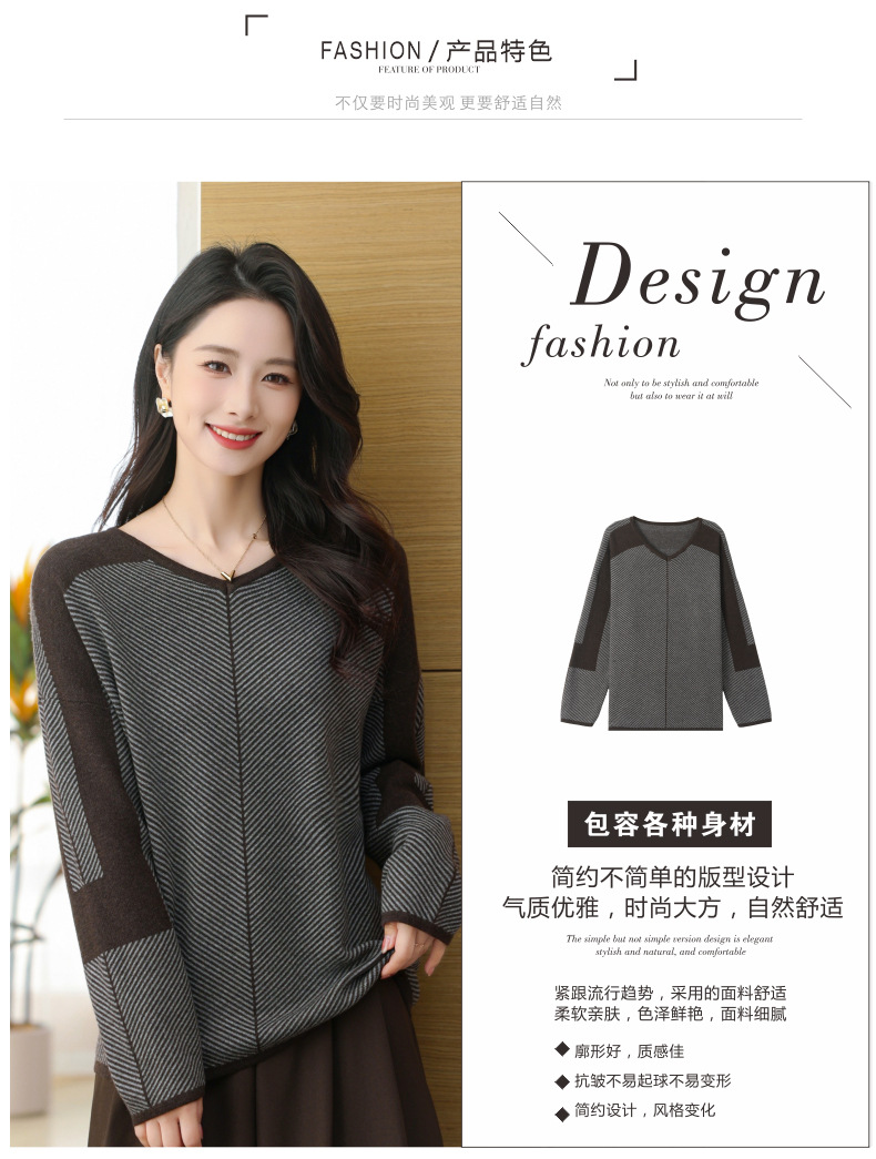 CC-SYX-9036桃心领打底衫女秋冬条纹撞色上衣时髦毛衣大码羊毛针织衫