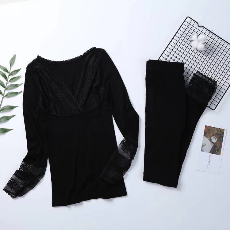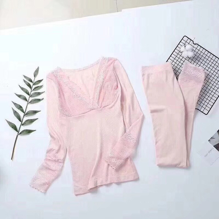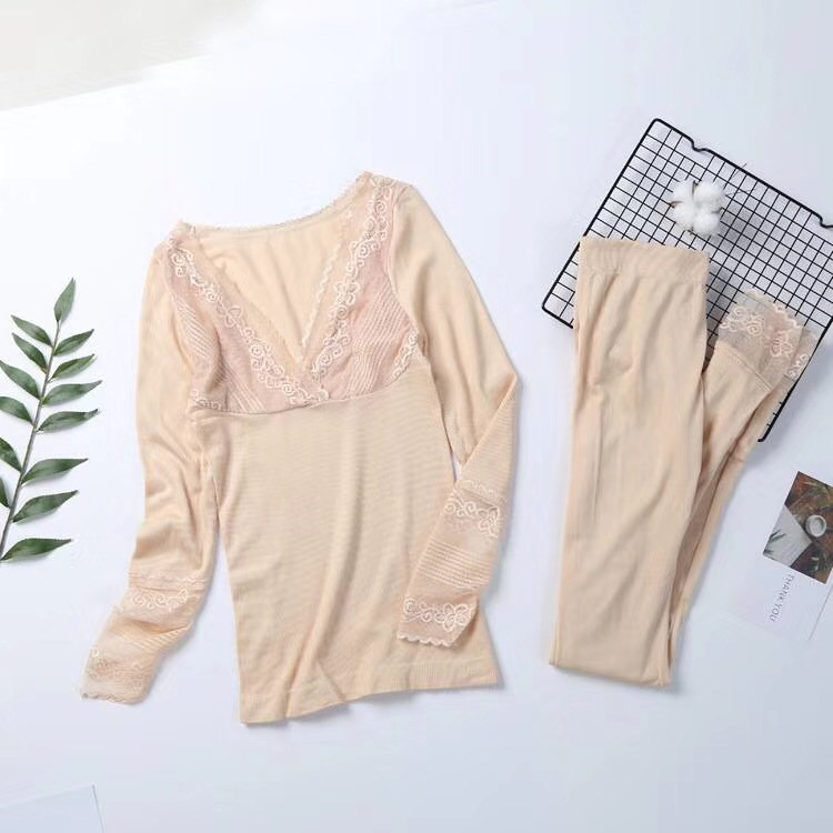 RY-R2689可可唯美树纹蕾丝恒温发热保暖内衣V领女神衣修身秋衣秋裤套装女