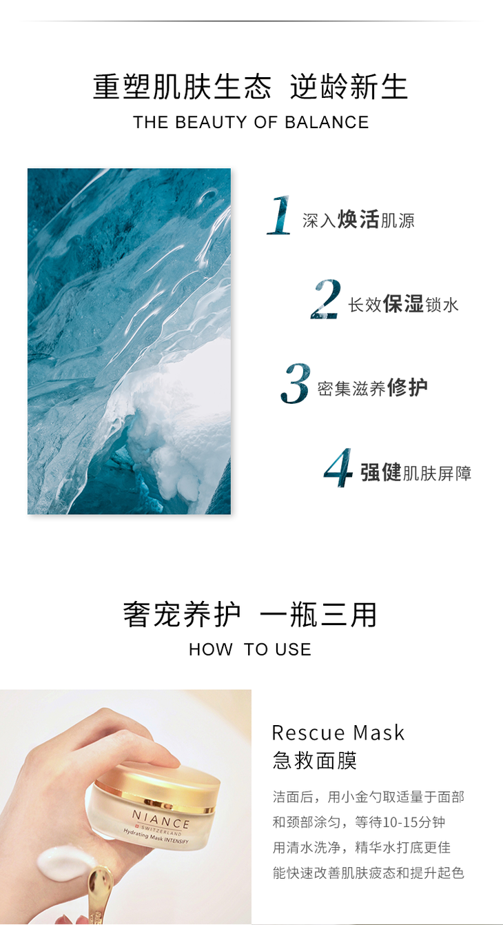 NIANCE妮瑞斯冰川面膜50ml 瑞士补水嫩肤淡纹修复红血丝抗皱