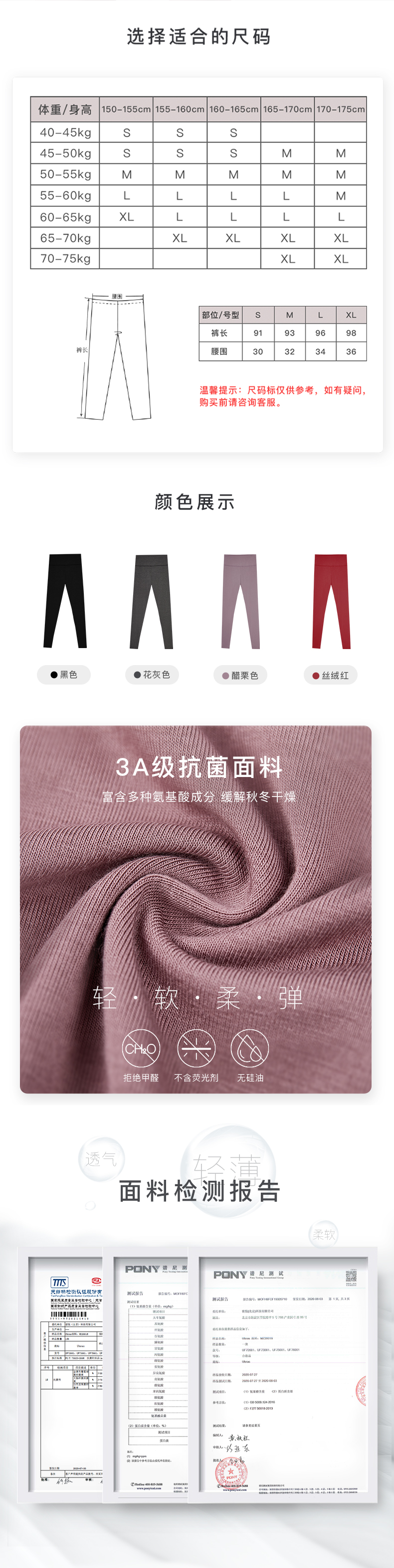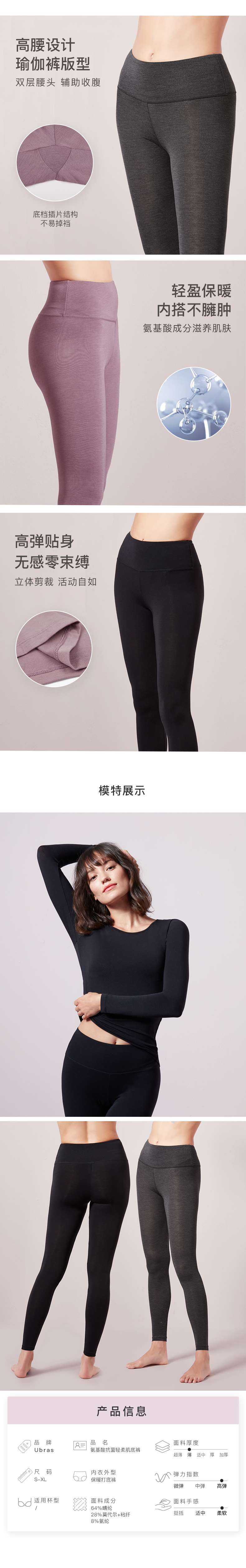 Ubras氨基酸抗菌轻柔肌底裤秋裤女内穿保暖裤发热纤维保暖衣女