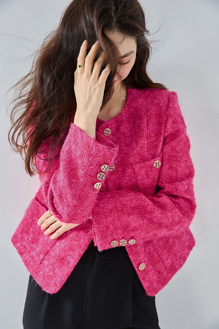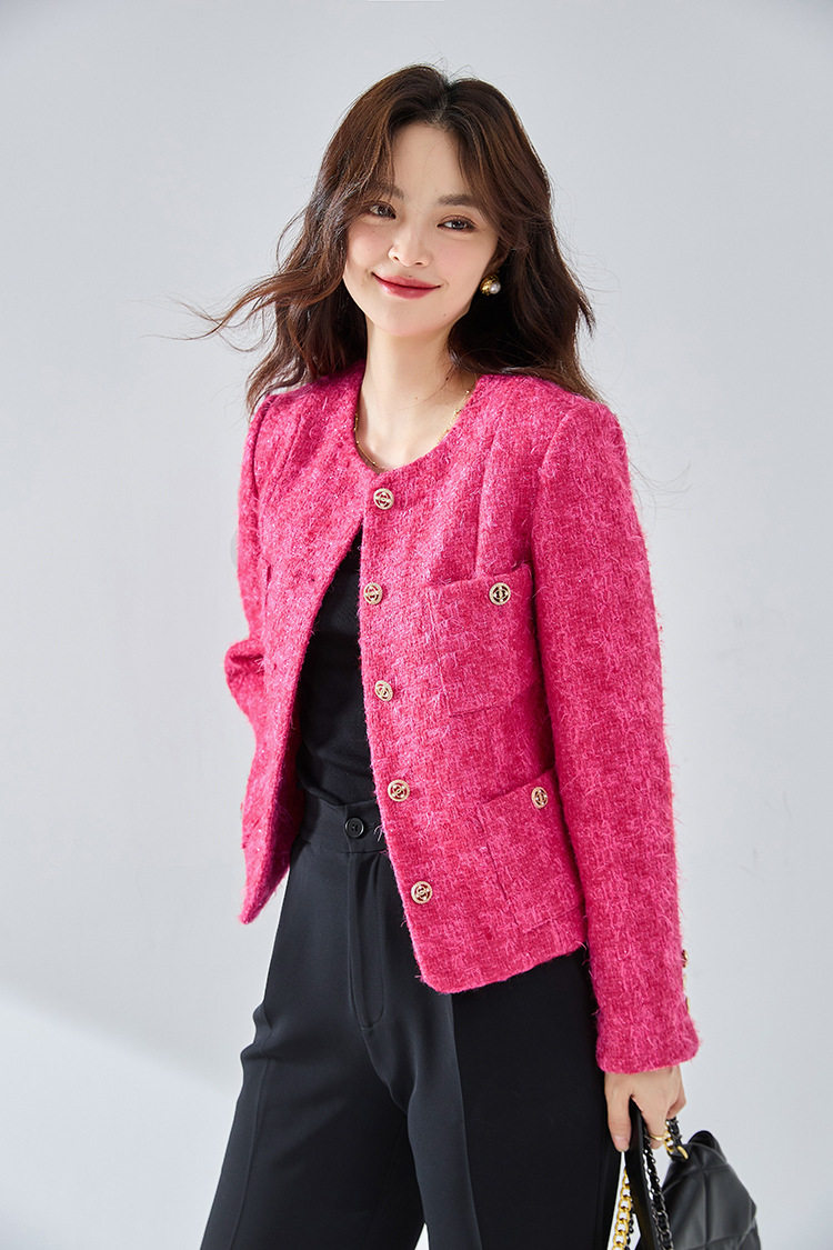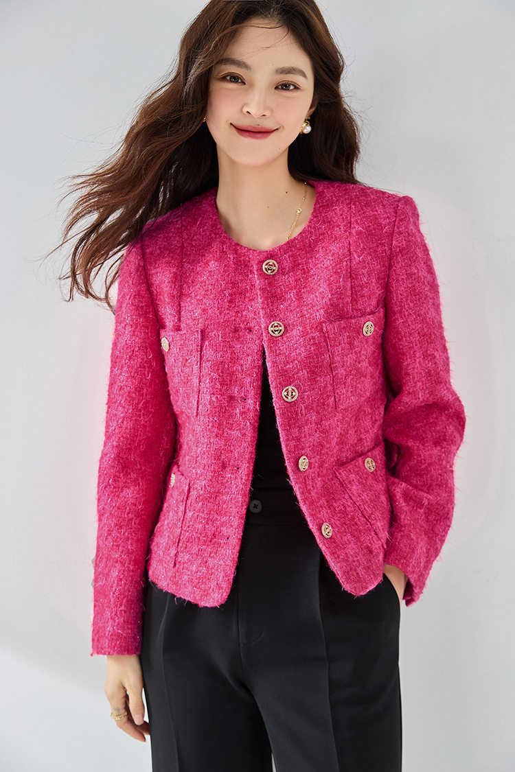 「高货sh」全新升级【铂金会员422/天猫569/差价147】(14115)洛诗琳气质小香风外套2026春季新款小圆领羊毛编织短外套