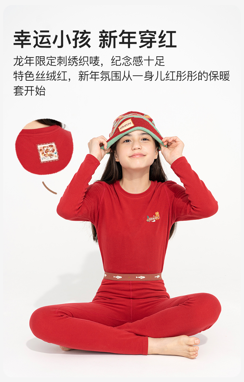 likeuu儿童秋衣秋裤套装打底热奶皮男女大童保暖内衣