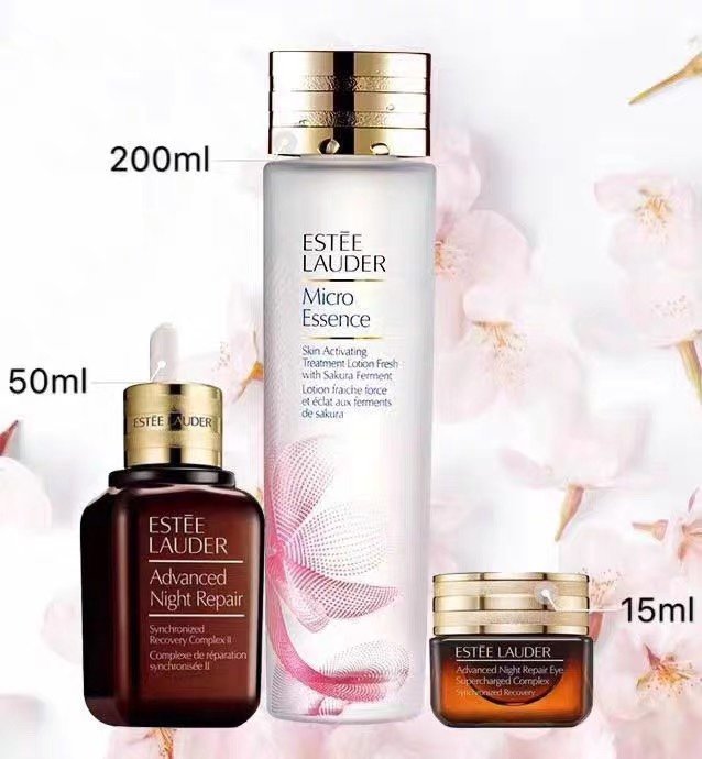 雅诗兰黛限量三件套👍雅诗兰黛护肤套装性价比之最😱,黄金抗老三件套!属于多效抗老套装,集紧致抗老🤜🏻,弹力滋润💦,修复重生等多重功效!原生液主打缓解干燥粗糙,加强肌肤抵抗力。小棕瓶镇店之宝,修复皮肤屏障没得说,一百分💯!眼霜有着2️⃣4️⃣小时抗蓝光保湿+8️⃣小时抗氧化+3️⃣周淡化黑眼圈的神奇功效。闭眼入手,都不会错!!套装包括:抗蓝光眼霜15ml➕小棕瓶脸部精华50ml➕樱花版原生液200ml