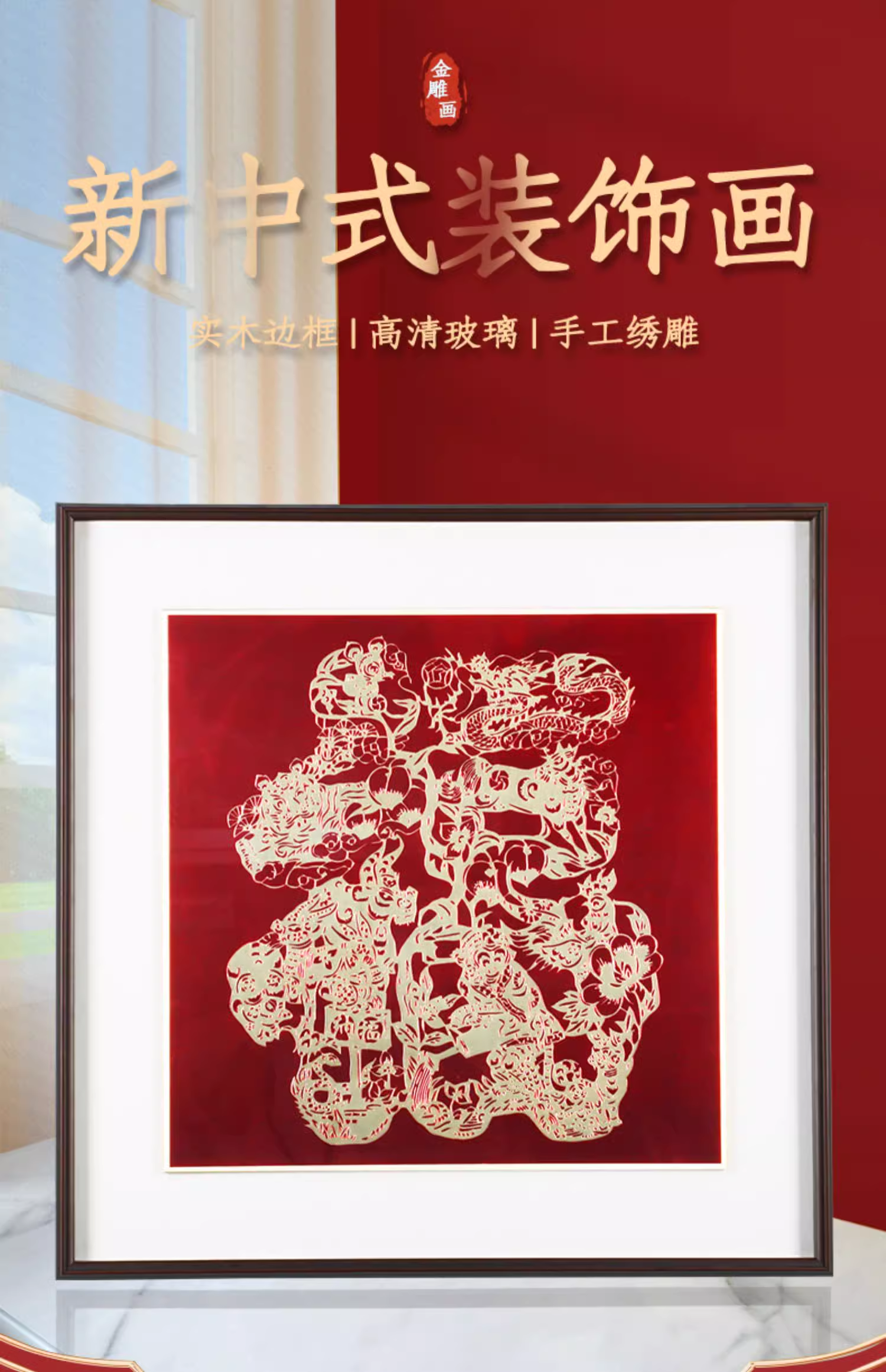 【彼达思】金雕画家居装饰金雕画十二生肖、福福禄临门、富贵有余、事事如意手工雕刻装饰框画