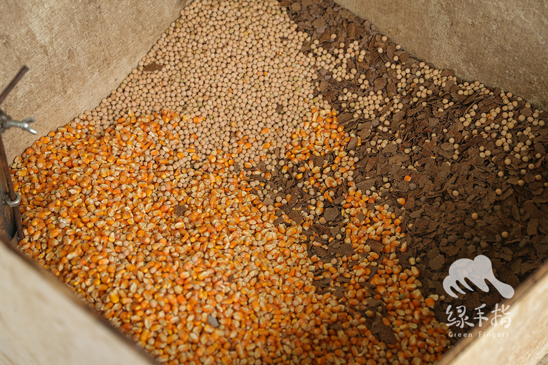 给鹌鹑们喂食非转基因、无农残的玉米、麦麸、花生麸、豌豆、石粉;使用白头翁、杨树花、青蒿等中草药防治病害。