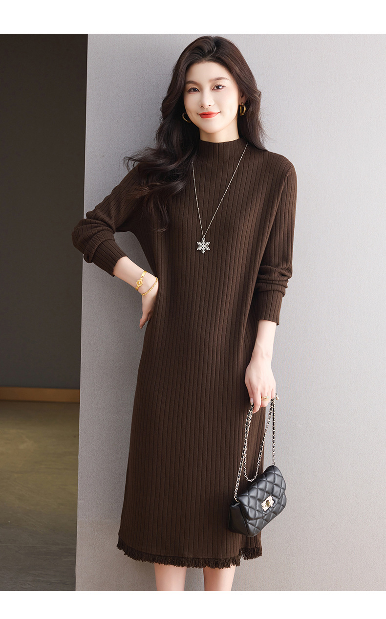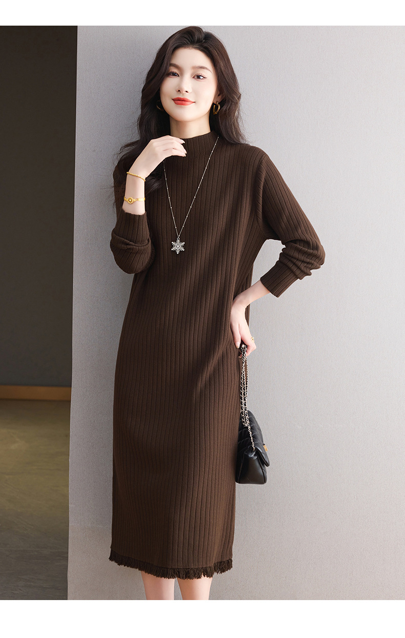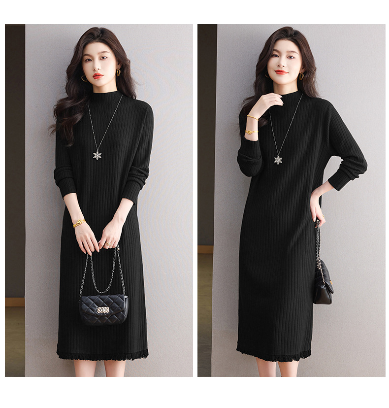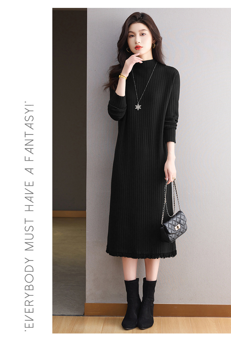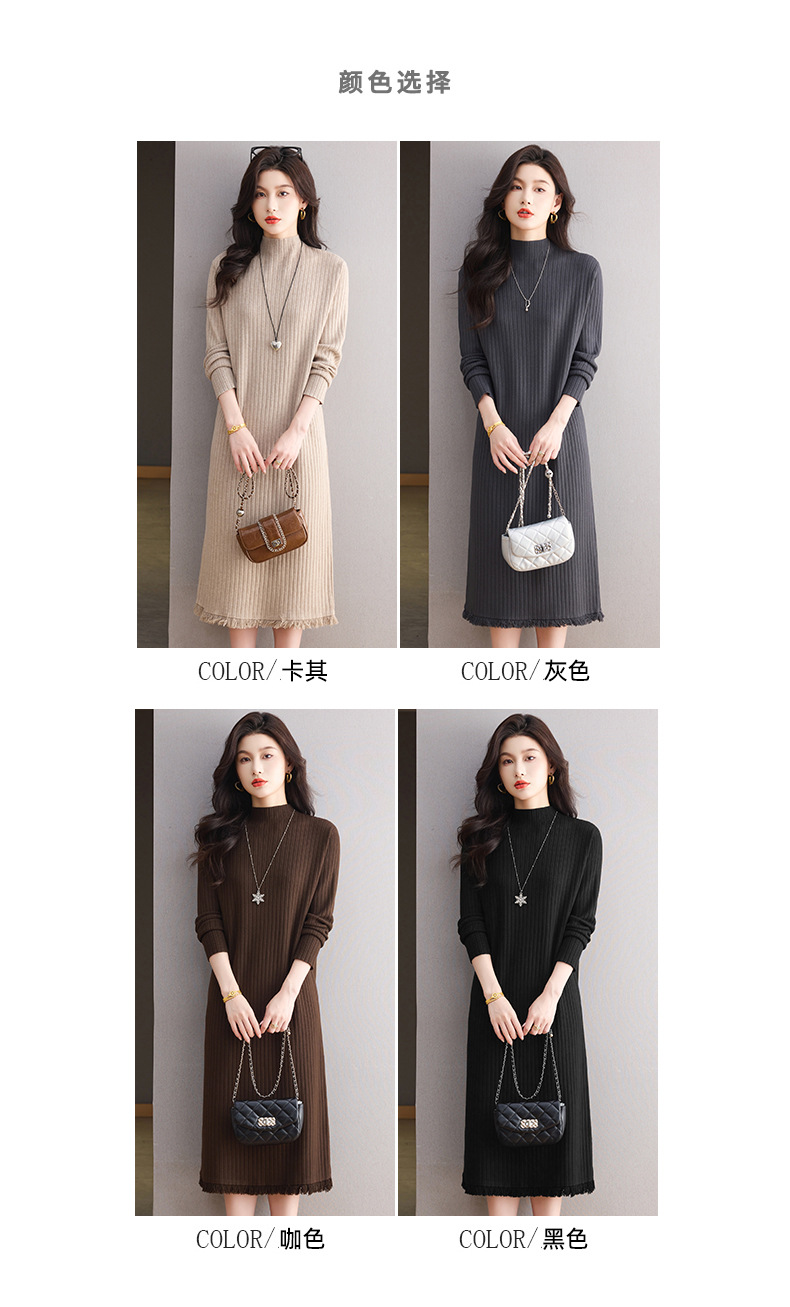 CC流苏高级感连衣裙冬季配大衣的裙子气质长款显瘦漂亮毛衣裙好看厚