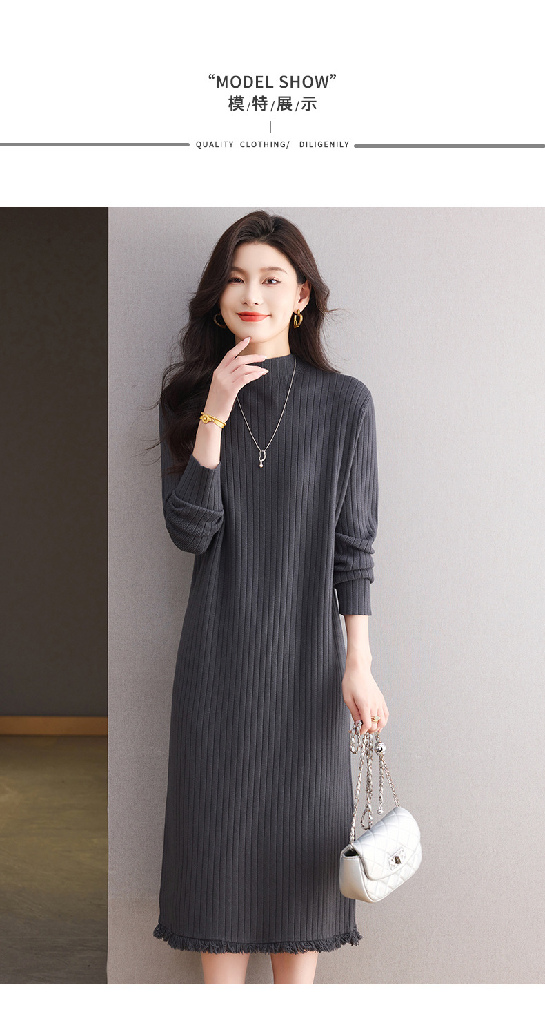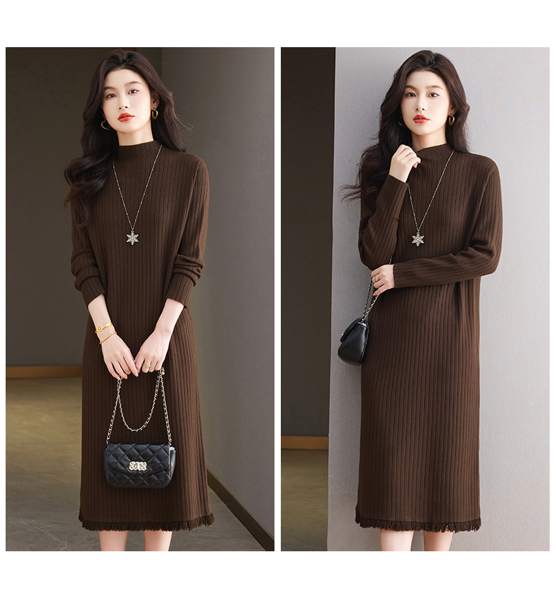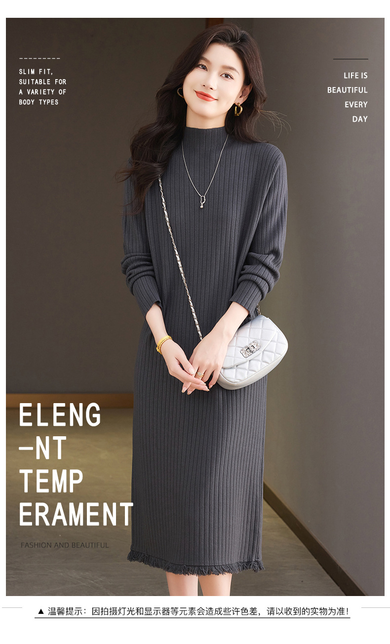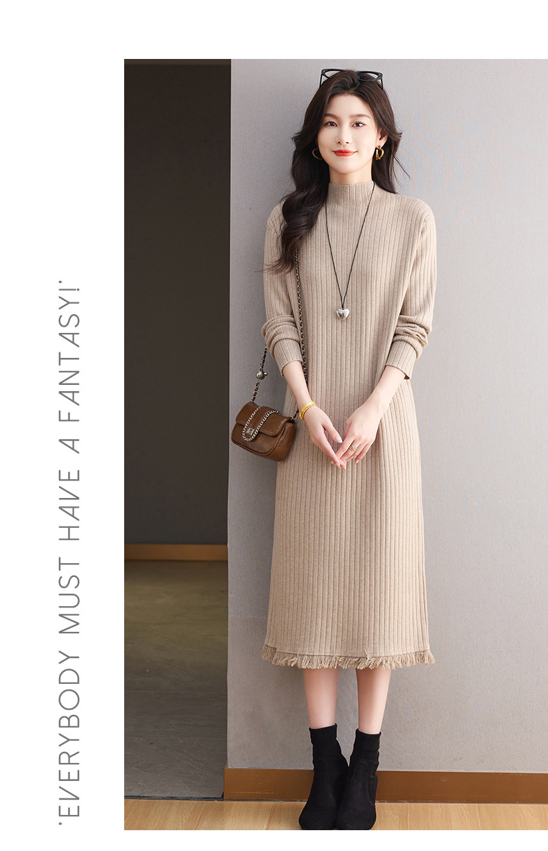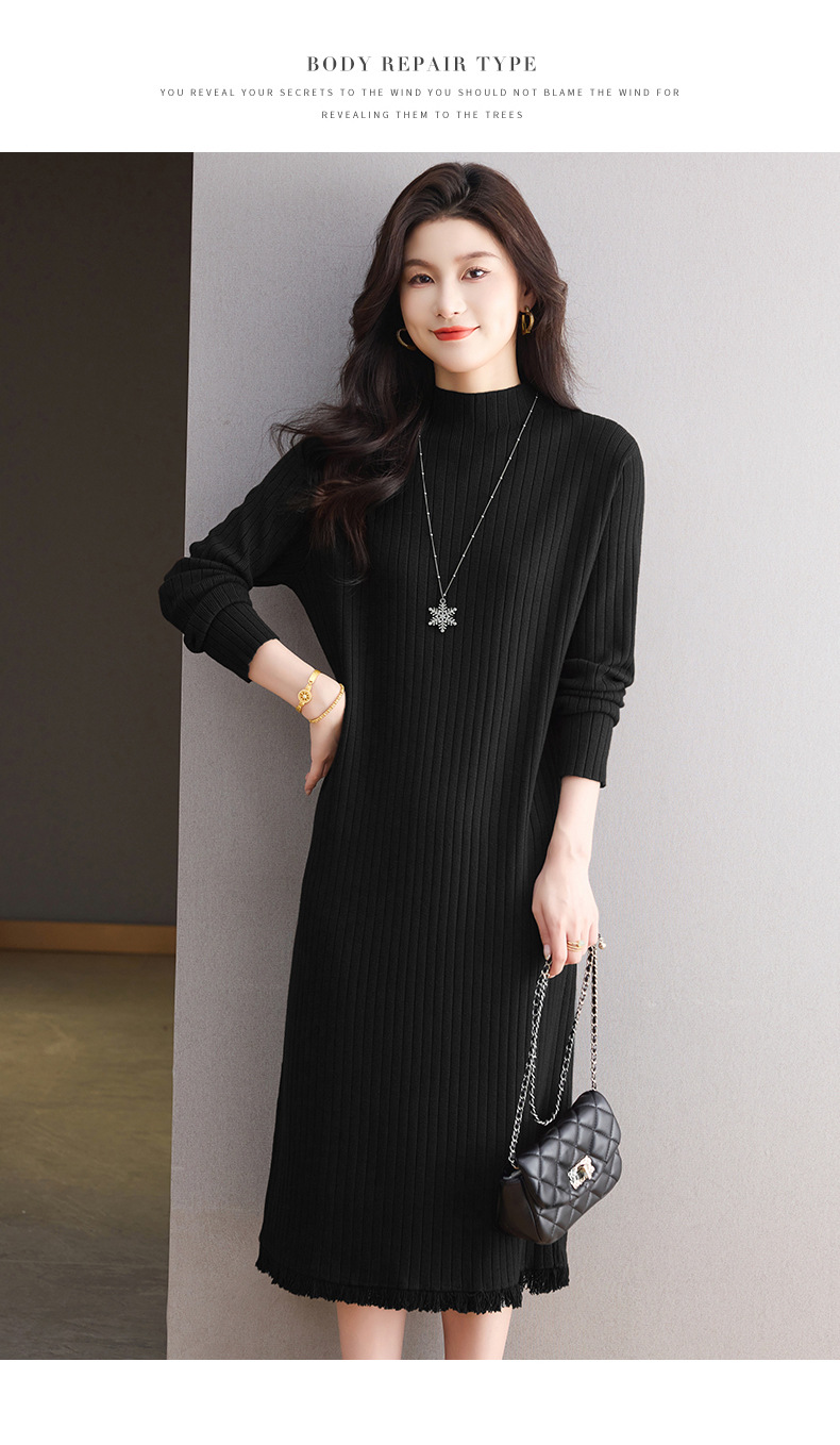 CC流苏高级感连衣裙冬季配大衣的裙子气质长款显瘦漂亮毛衣裙好看厚