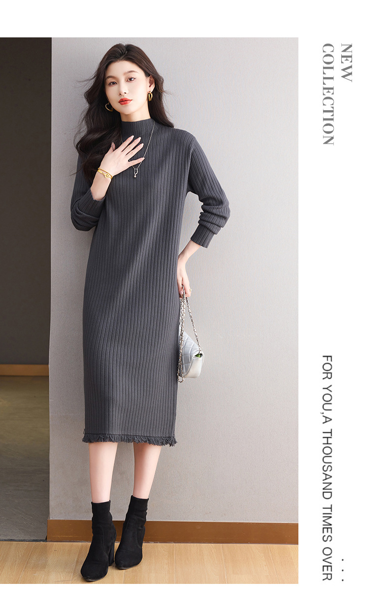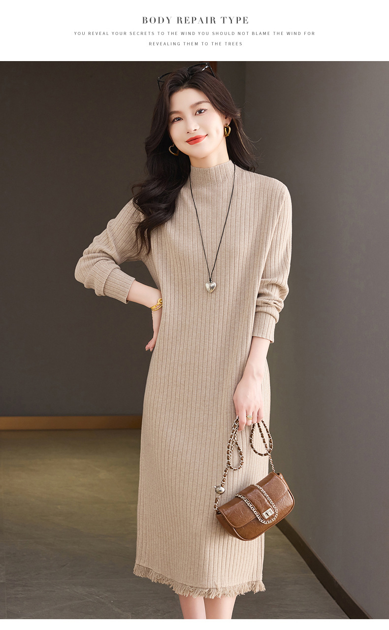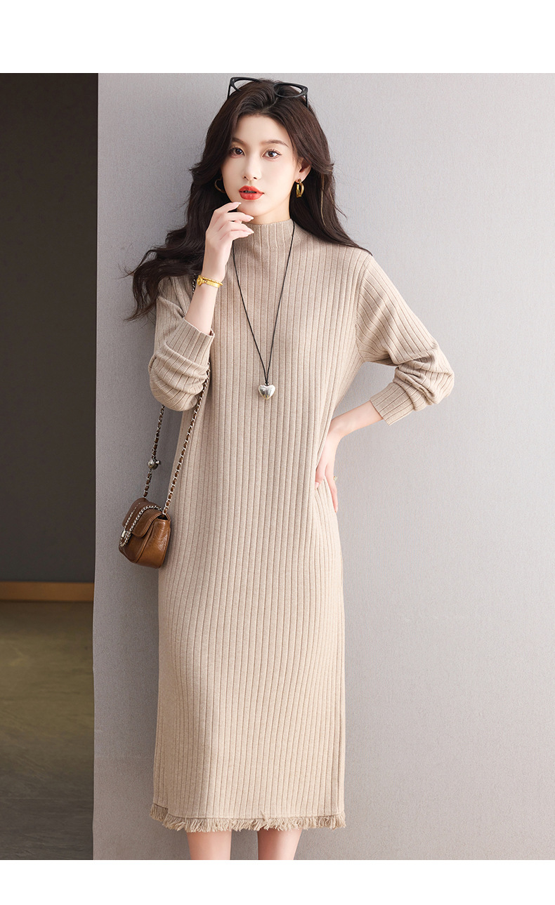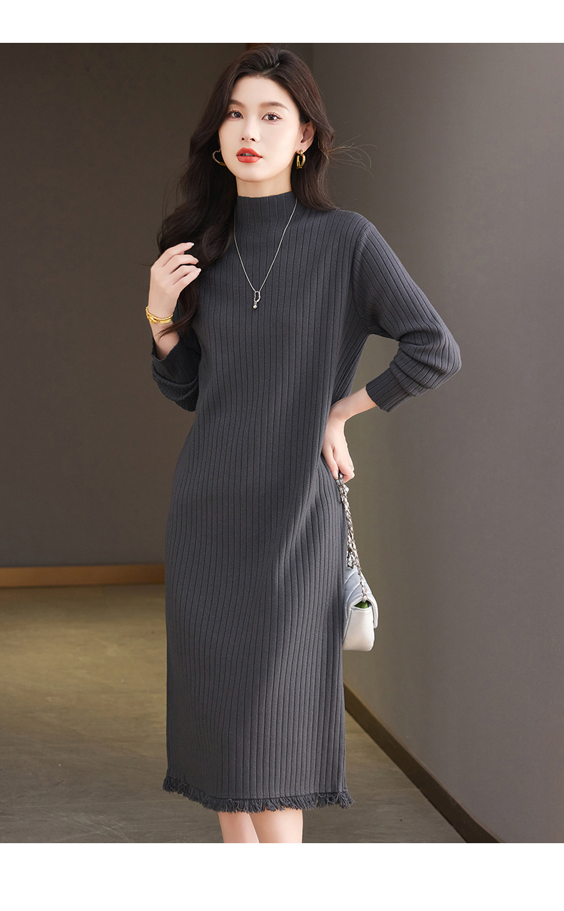 CC流苏高级感连衣裙冬季配大衣的裙子气质长款显瘦漂亮毛衣裙好看厚