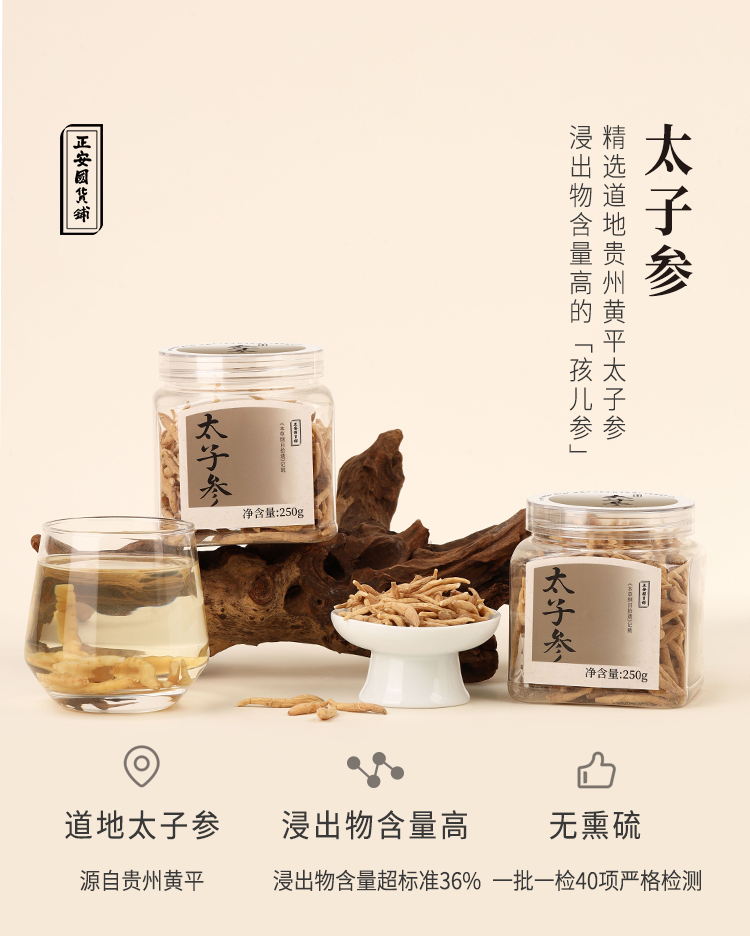 正安 贵州太子参 肉质肥厚高海拔种植拒绝膨大剂 优质原材 温和元气脾胃拒绝口干口渴疲惫感 泡水煲汤家庭办公室食养礼品 孩儿参250g/瓶