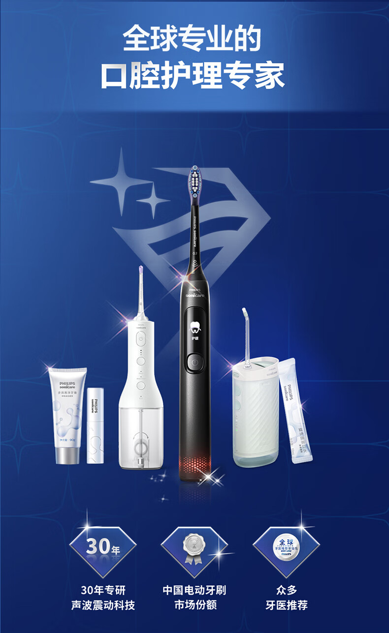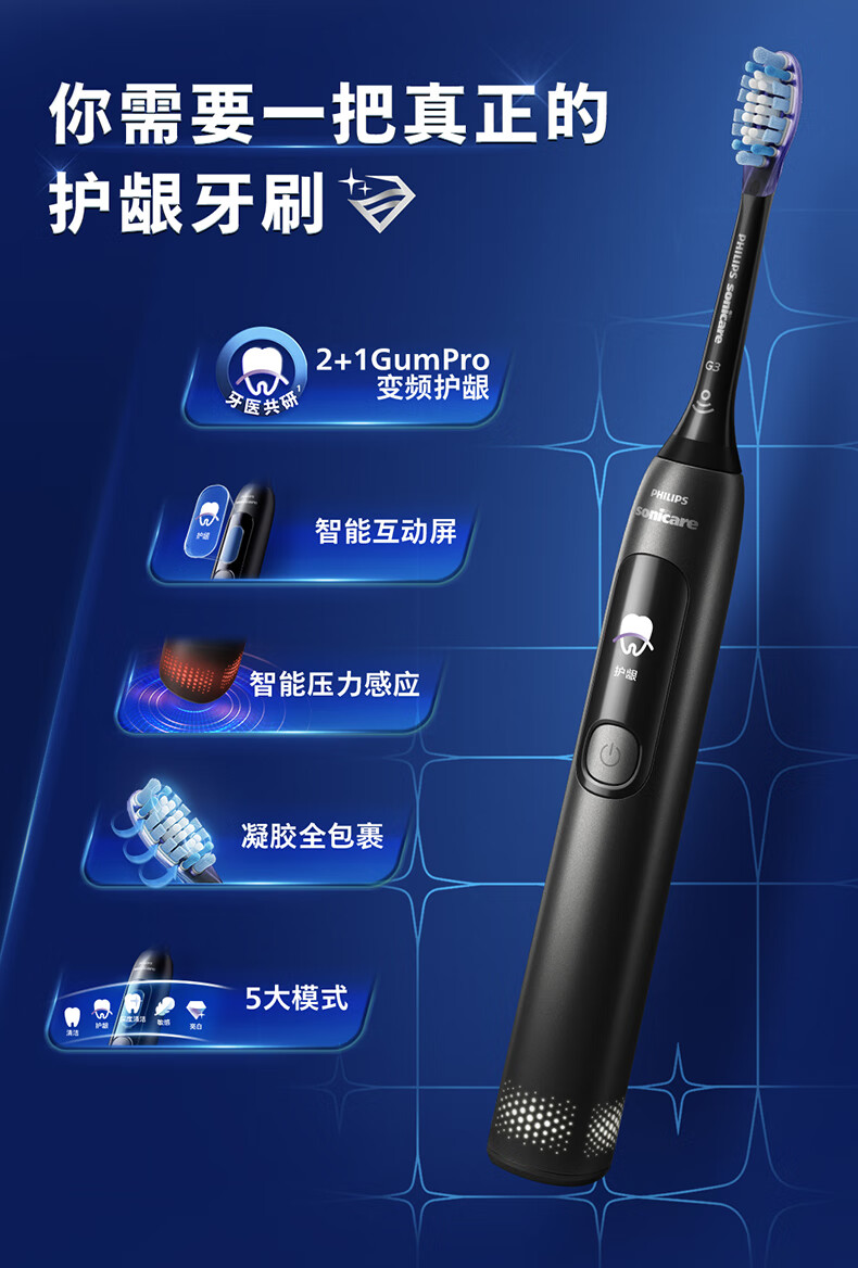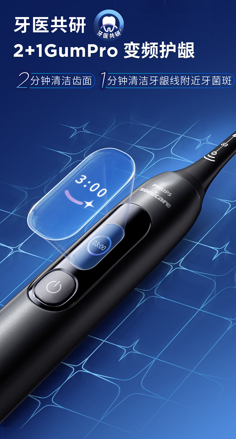 【飞利浦】变频护龈电动牙刷钻石7系 智能显示屏 极夜黑HX3792/01