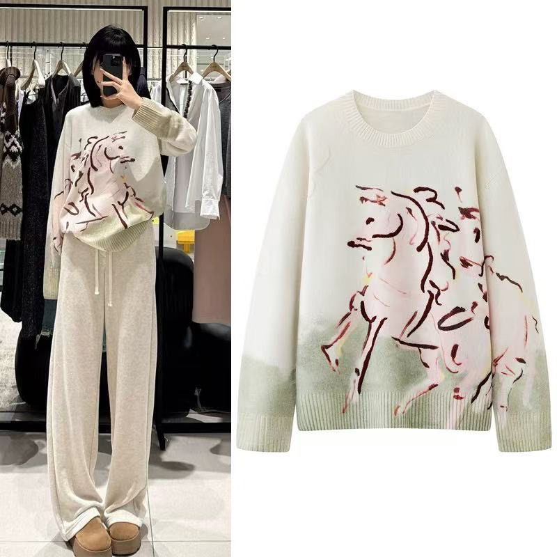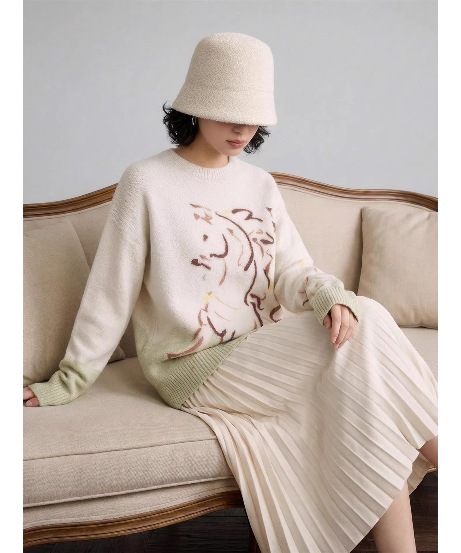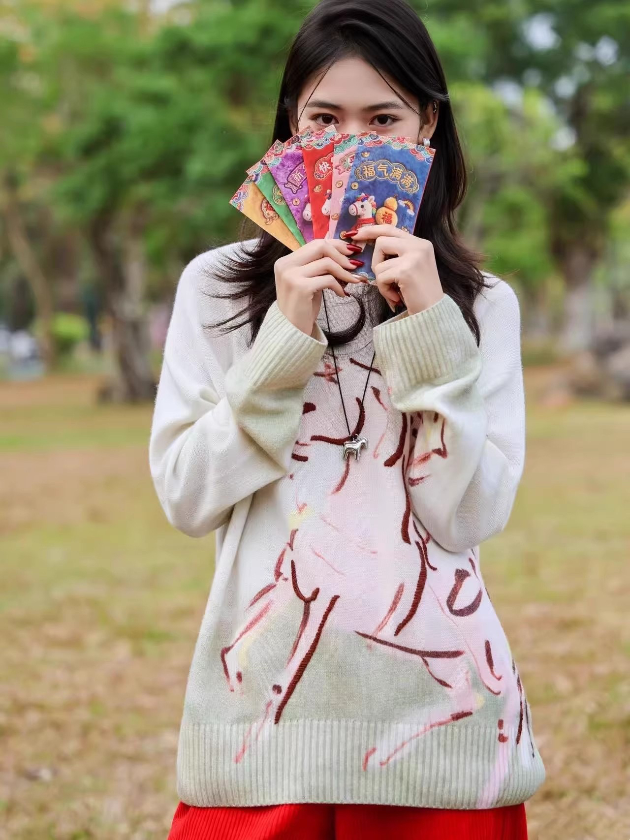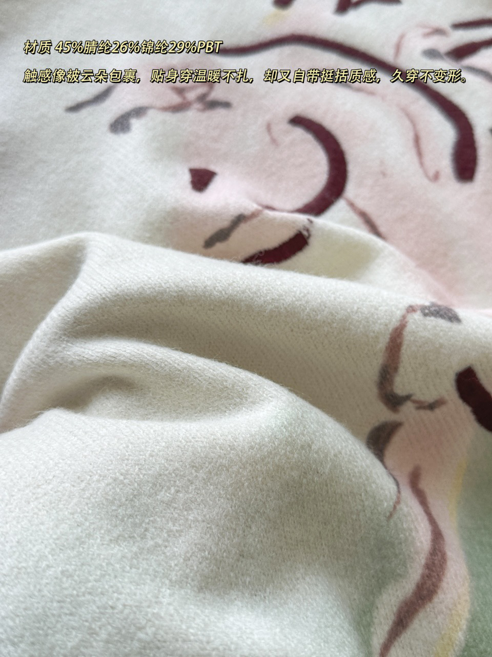 MO*同款26春新品生肖马年系列多彩织纹提花毛衣!「马年开运|艺术家级彩墨奔马」挺括圆领版型,罗纹宽且紧密,穿着挺括有型,多次穿着不易变形
