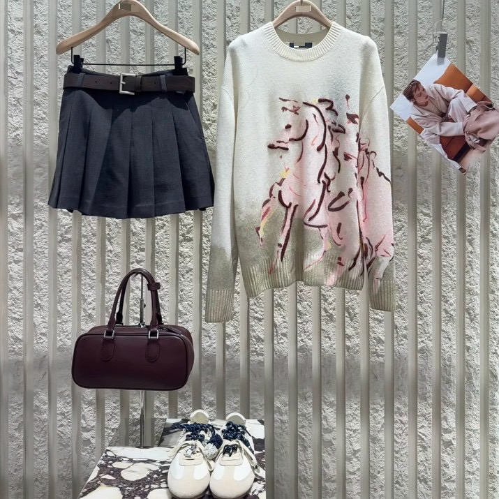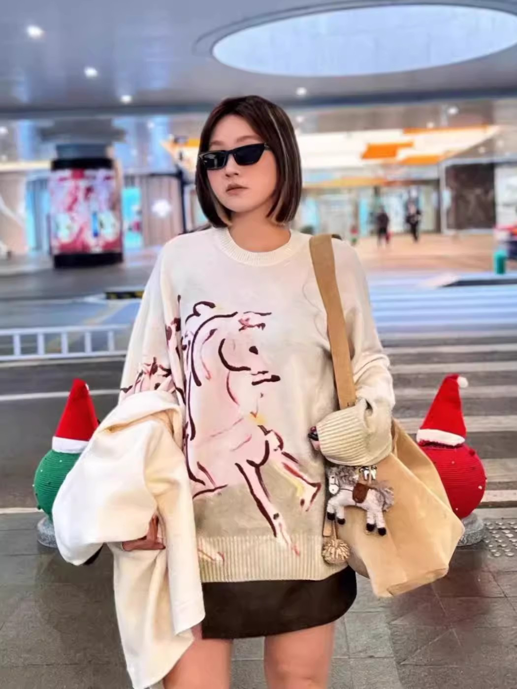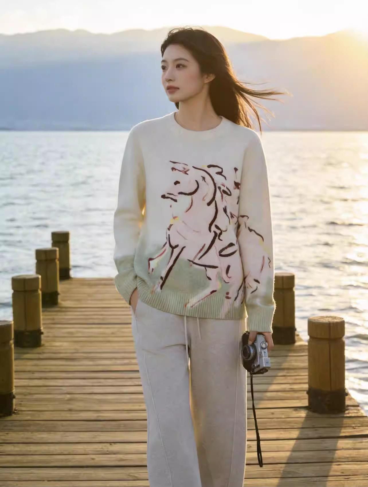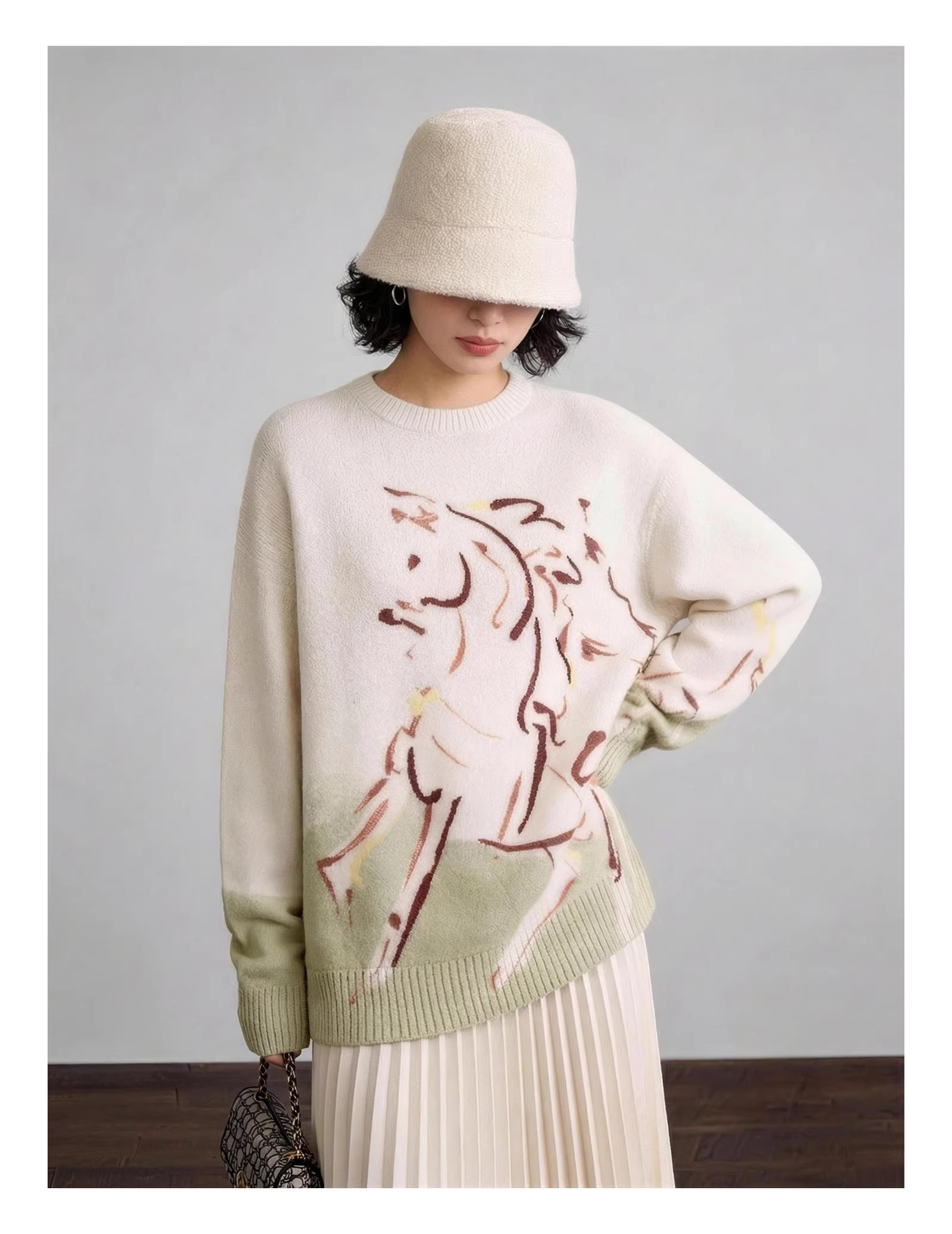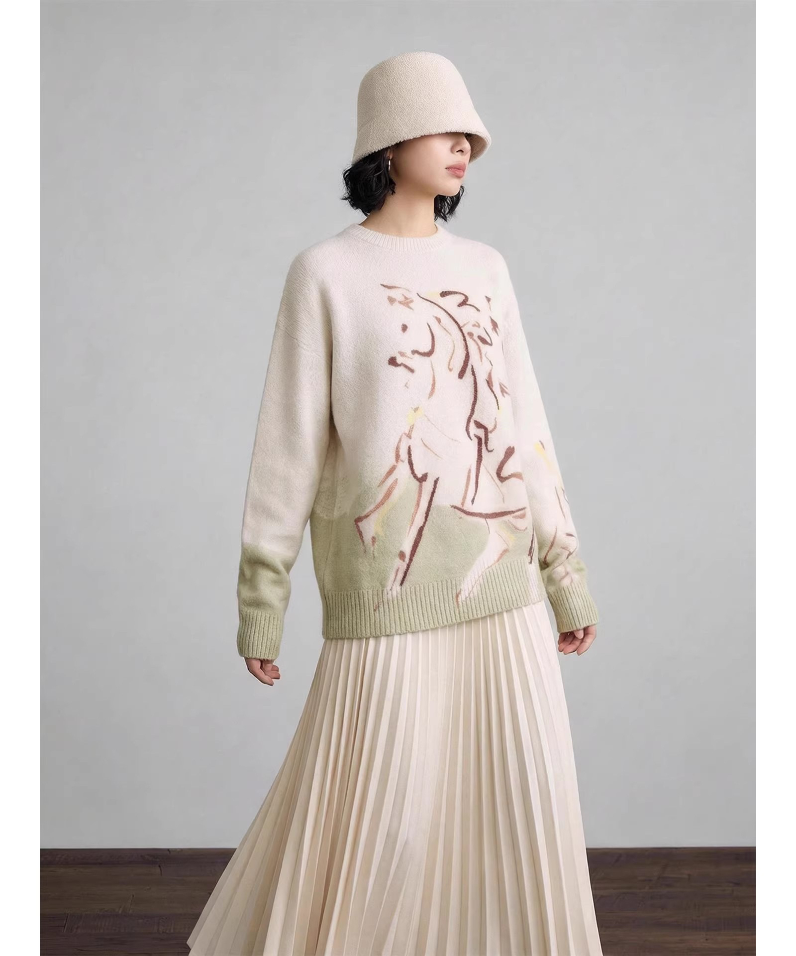 MO*同款26春新品生肖马年系列多彩织纹提花毛衣!「马年开运|艺术家级彩墨奔马」挺括圆领版型,罗纹宽且紧密,穿着挺括有型,多次穿着不易变形