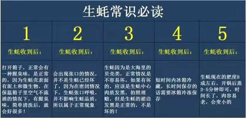 (以重量为准,每箱生蚝独立包装,如购买多件,分多个包裹发出,可能会前后陆续到货)
