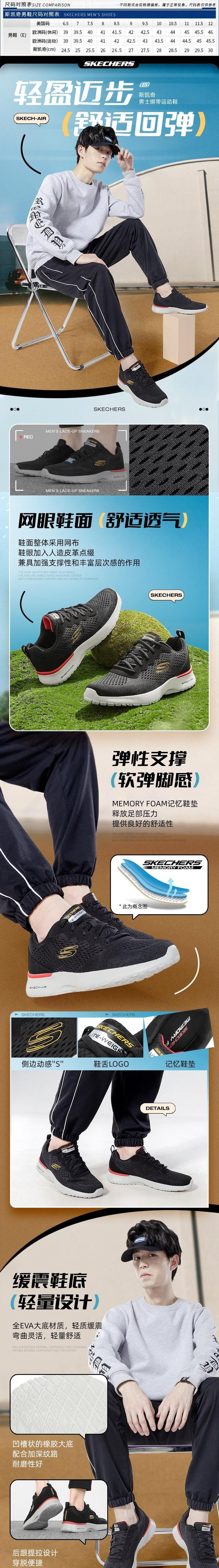 Skechers斯凯奇 男绑带运动休闲鞋 232291-BKBL