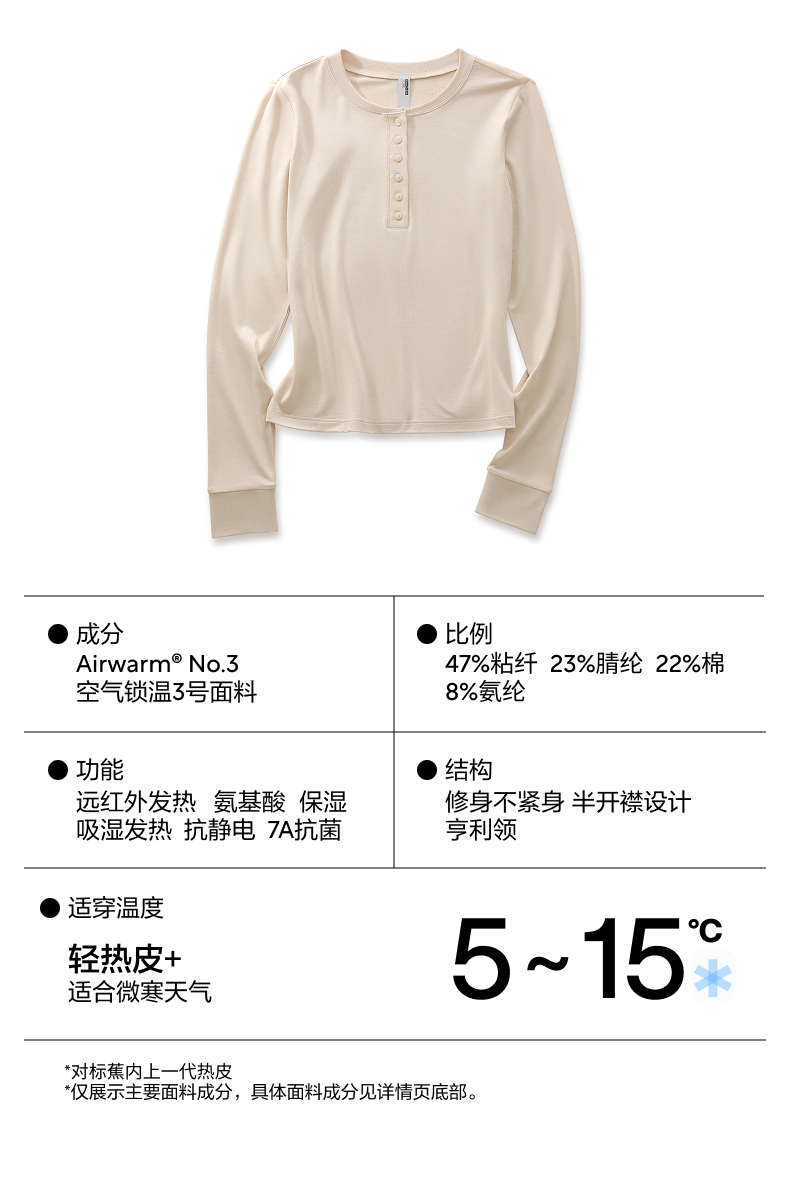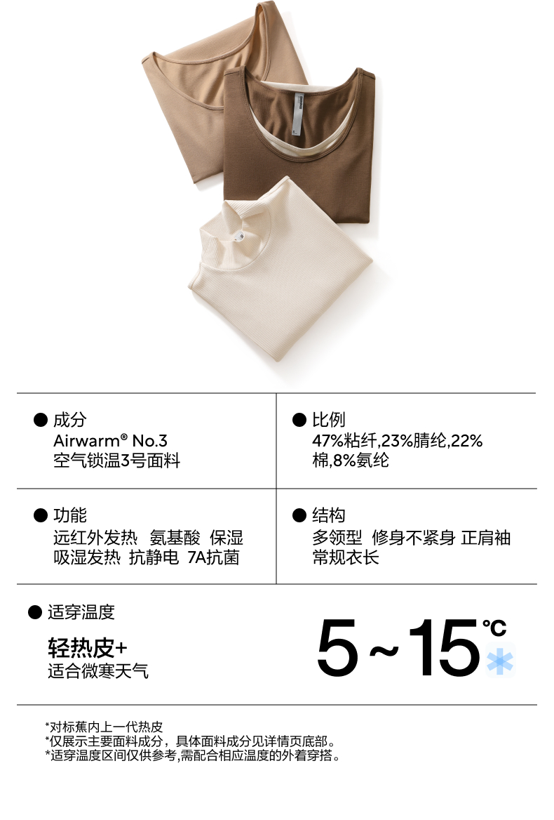 【氨基酸腈纶肌底衣 暖感纱柔润打底】蕉内热皮301+女士氨基酸肌底衣 柔润亲肤 修身不紧身