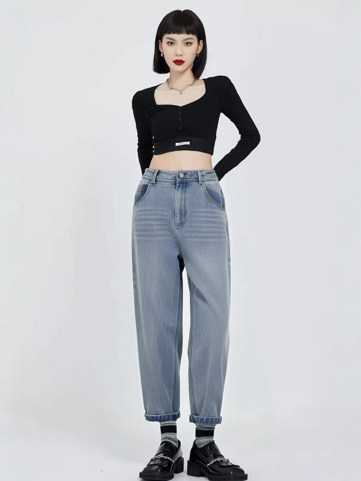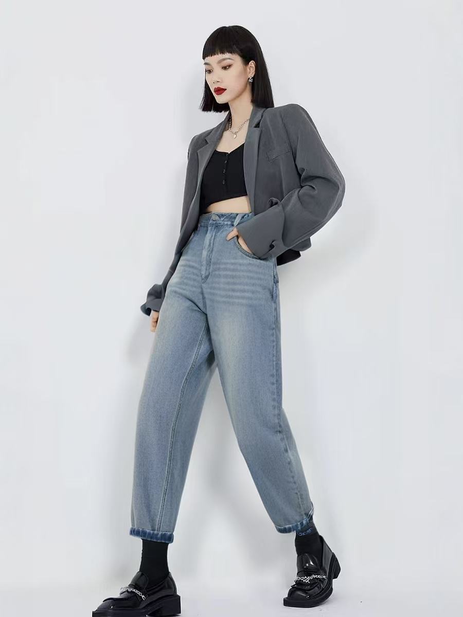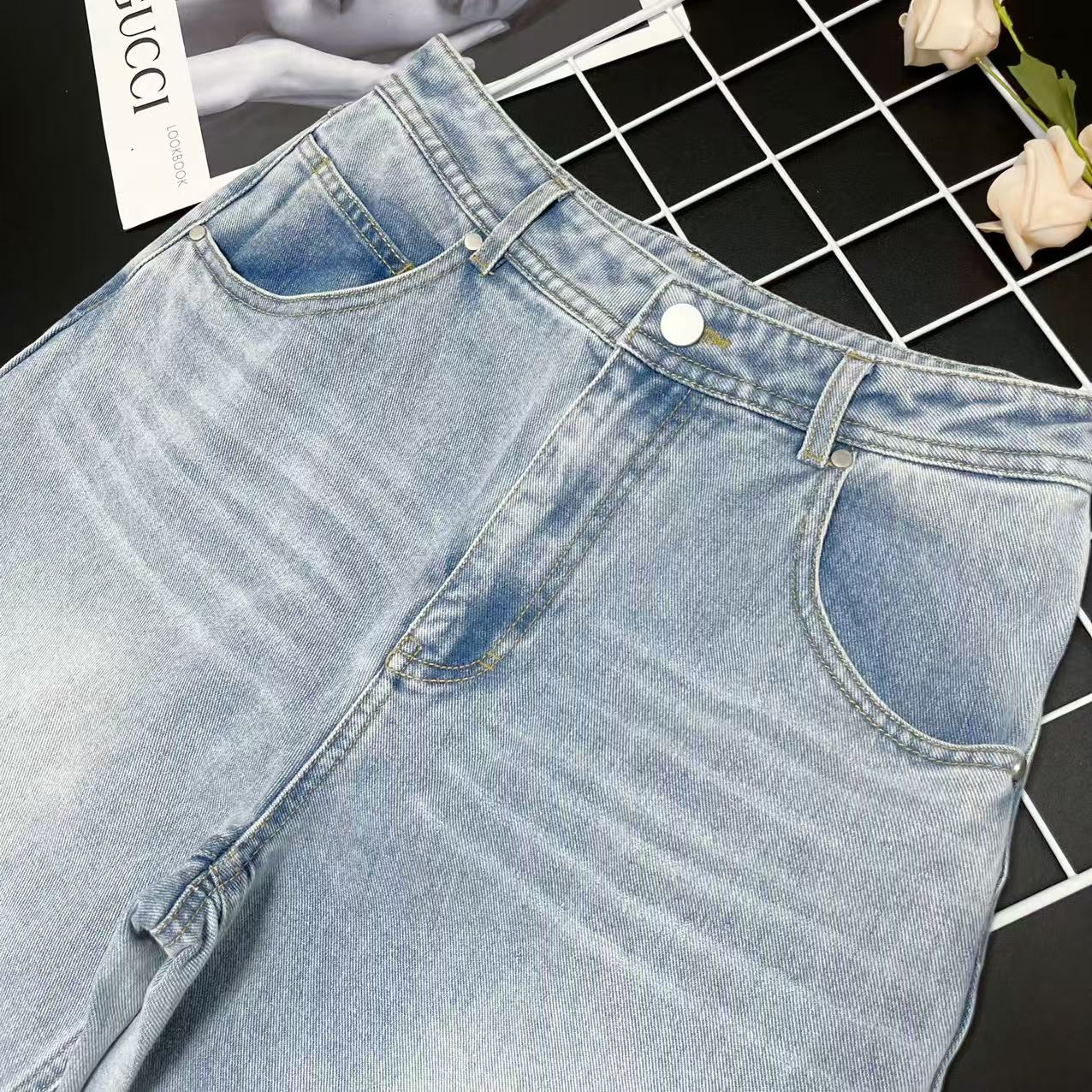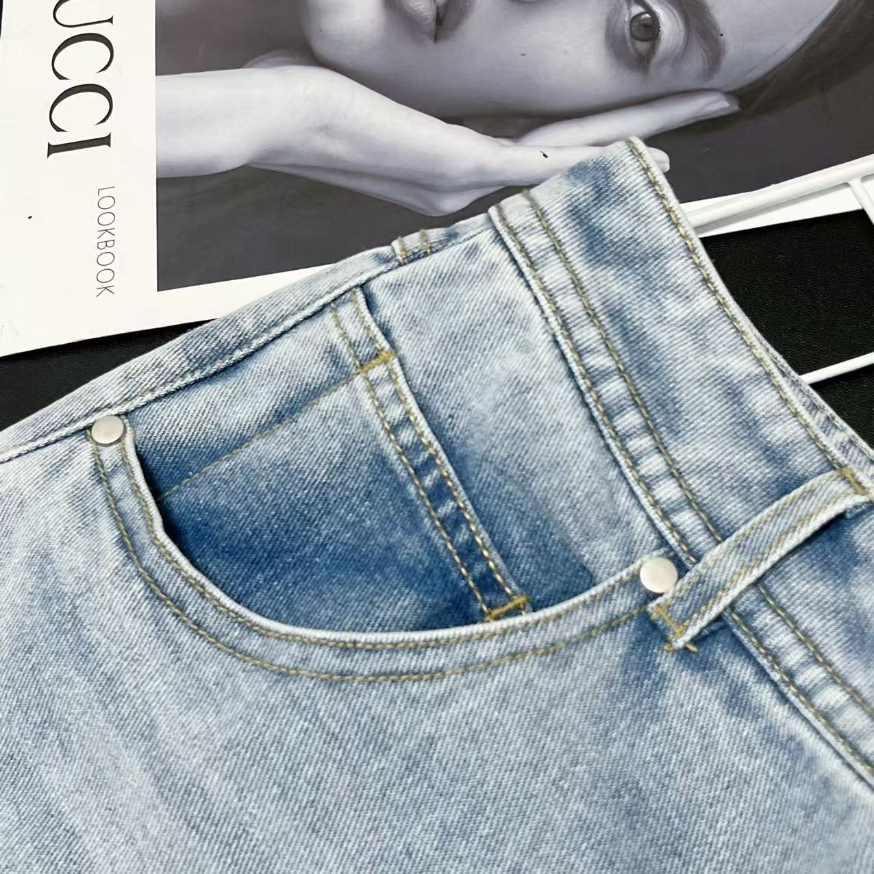 最后一件【春秋款】明星同款-章若楠同款品质24031九分浅色99.6%棉牛仔裤-喜出