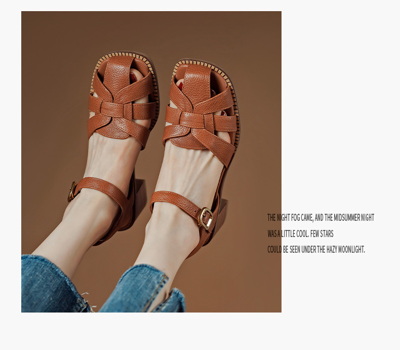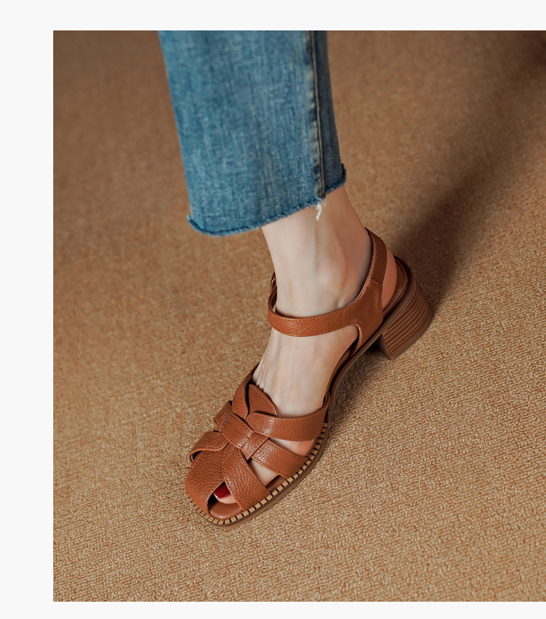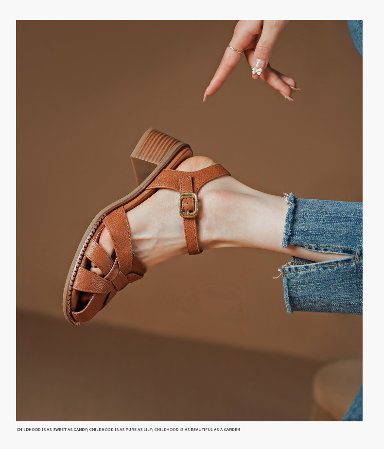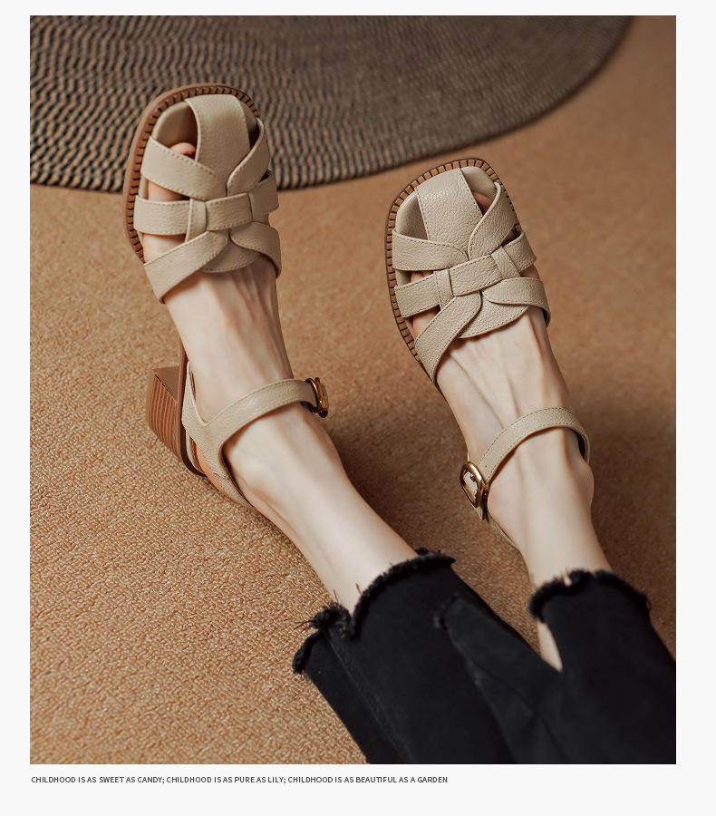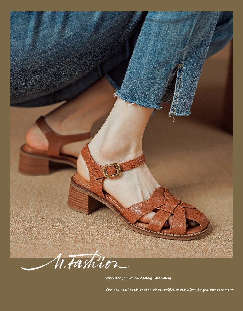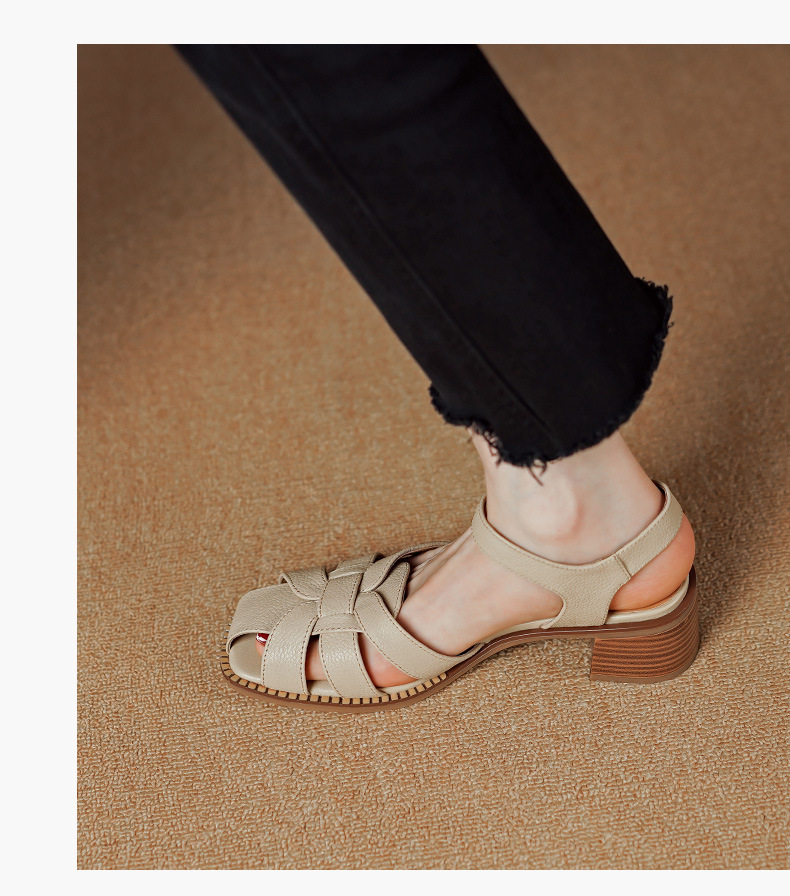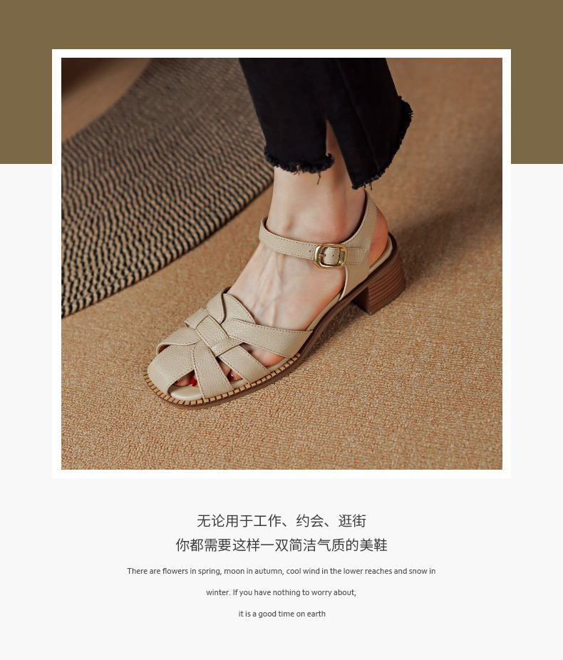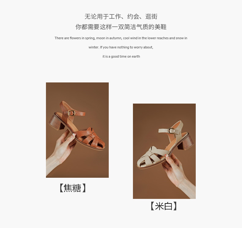 粗跟圆头凉鞋,时尚包头后空中跟女鞋YT-808-2
