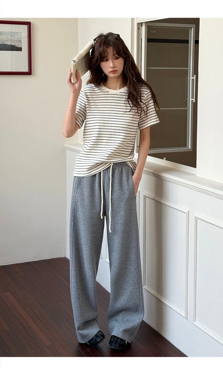 (小眠专属)K.HIP早八漫游裤 | 定制米妮细条肌理布 触感软糯轻微蓬松感,直筒微宽松剪裁 ,藏肉显瘦百搭!